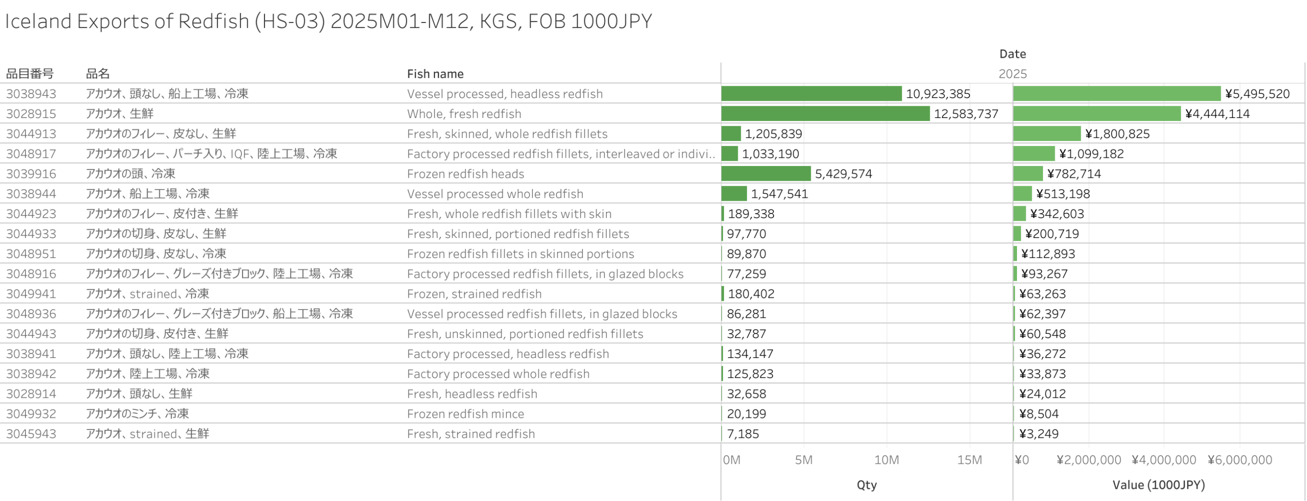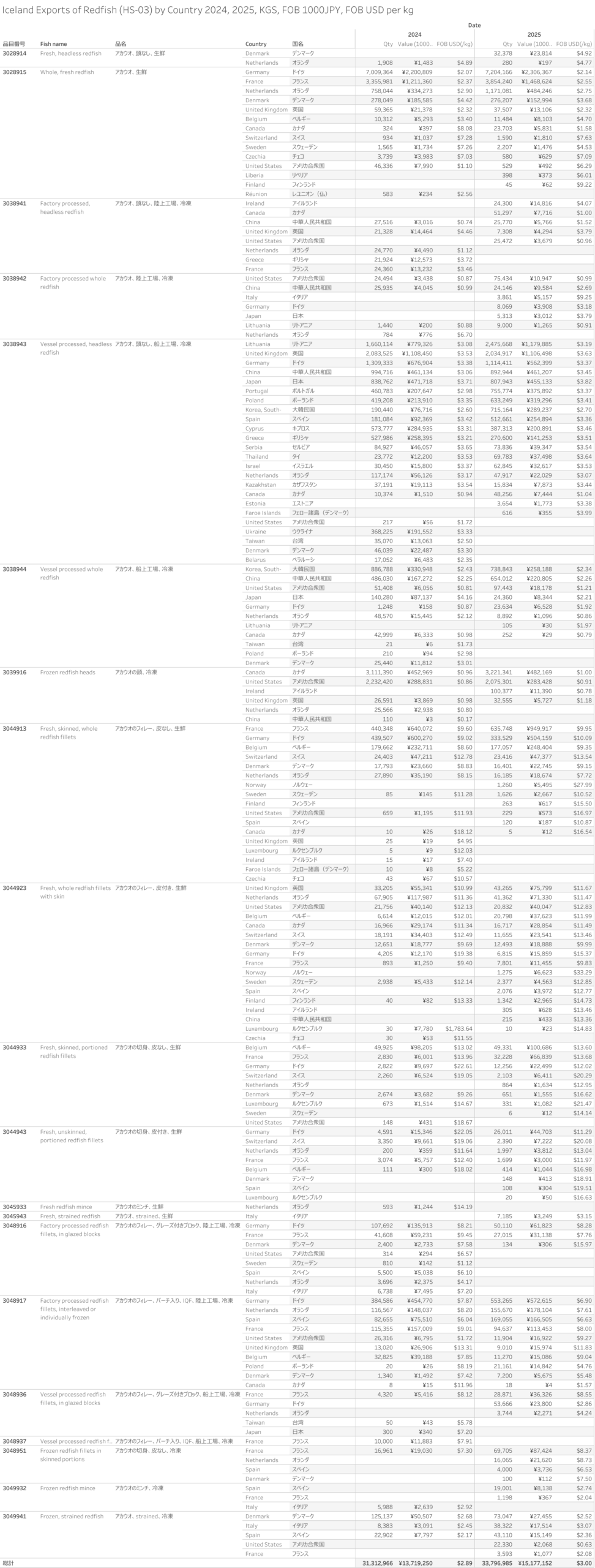 アイスランド アカウオ(HS-03)輸出統計 2025年12月まで