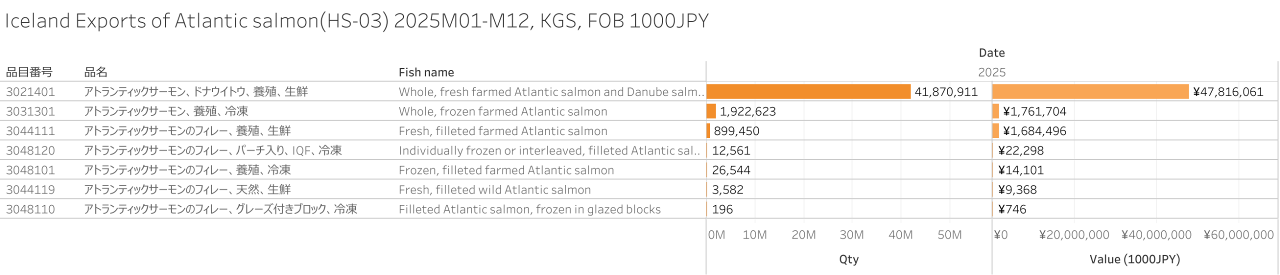 アイスランド アトランティックサーモン(HS-03)輸出統計 2025年12月まで
