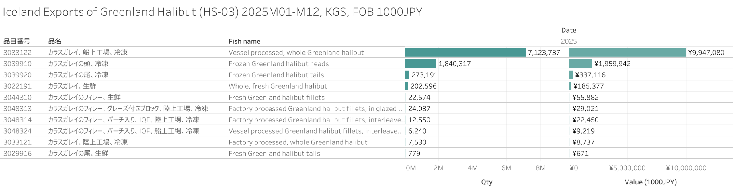 Iceland Exports of Greenland Halibut (HS-03) 2025M12