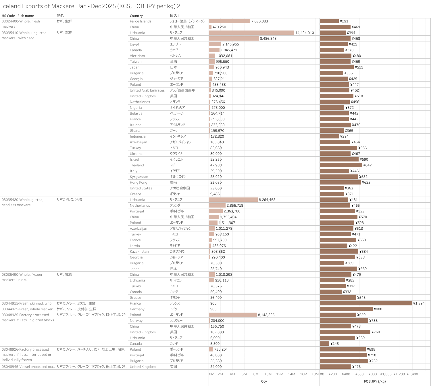 アイスランド サバ(HS-03) 輸出統計 2025年12月まで