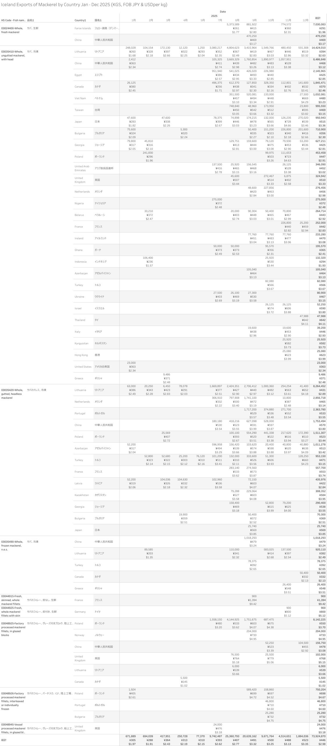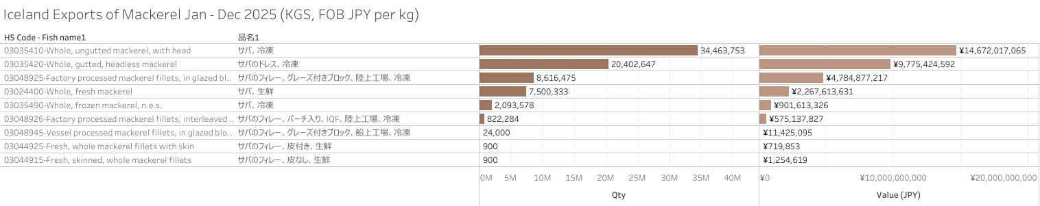 Iceland Exports of Mackerel (HS-03) Jan - Dec 2025
