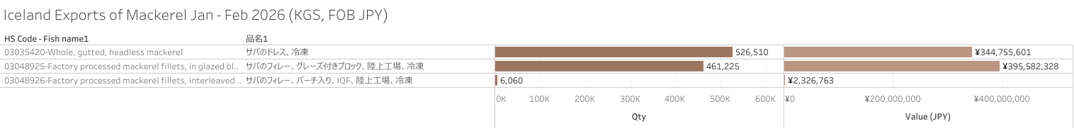 Iceland Exports of Mackerel (HS-03) Jan-Feb 2026