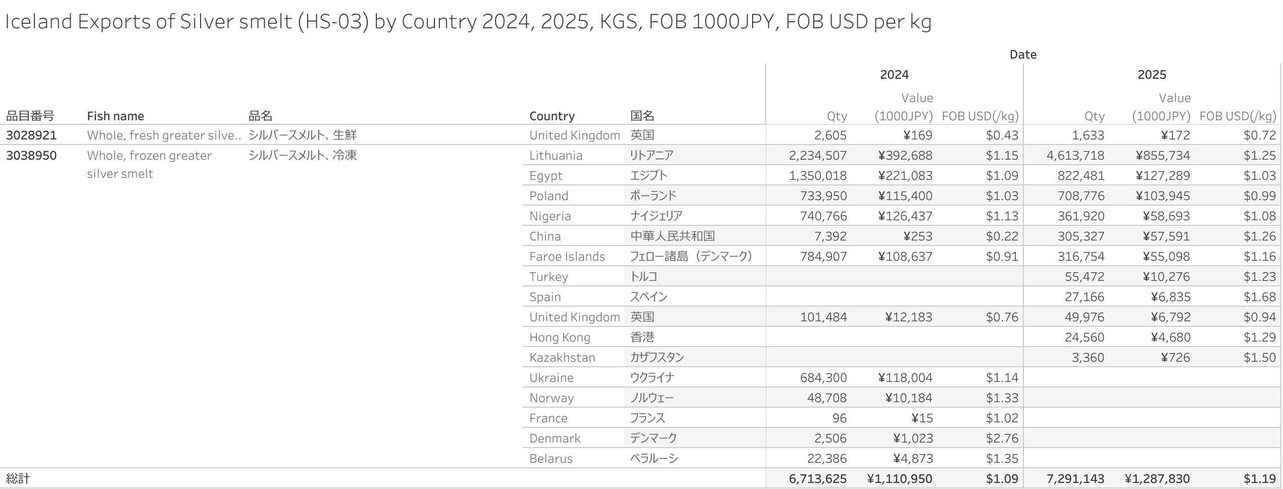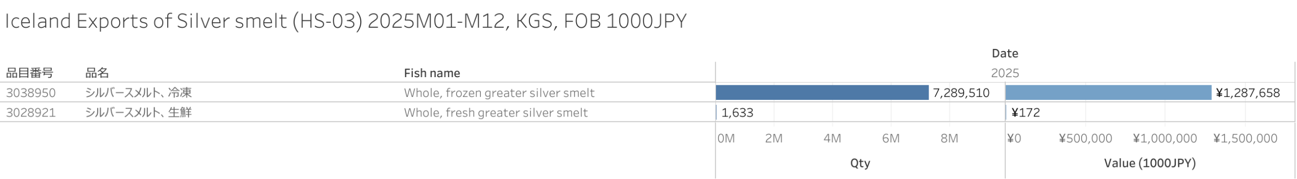 アイスランド シルバースメルト(HS-03)輸出統計 2025年12月まで