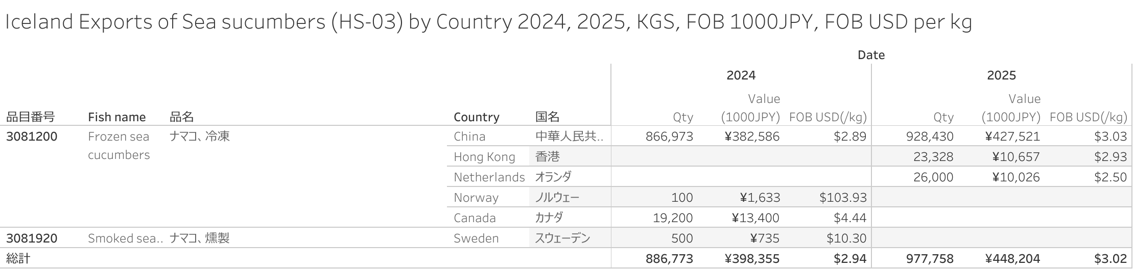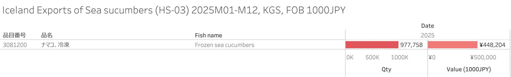 アイスランド ナマコ(HS-03)輸出統計 2025年12月まで
