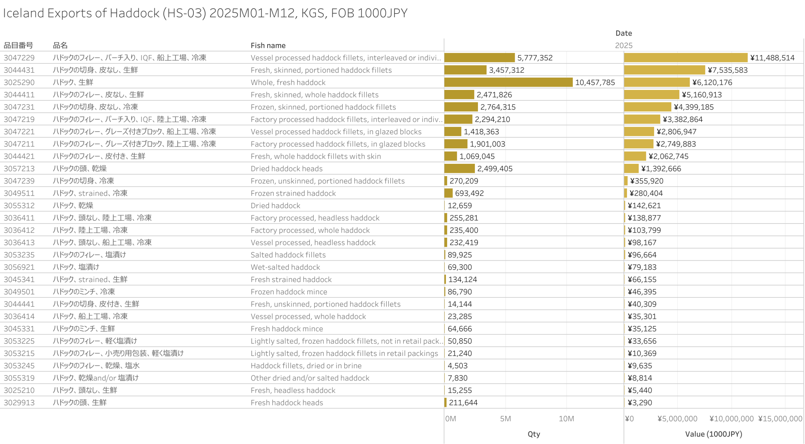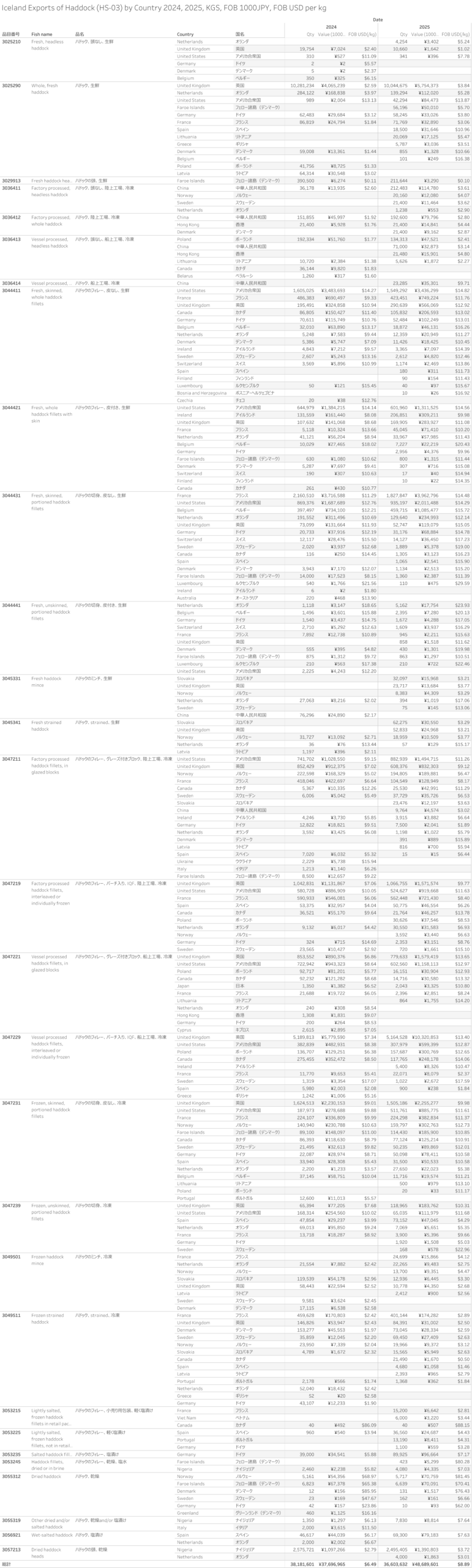 アイスランド ハドック(HS-03)輸出統計 2025年12月まで