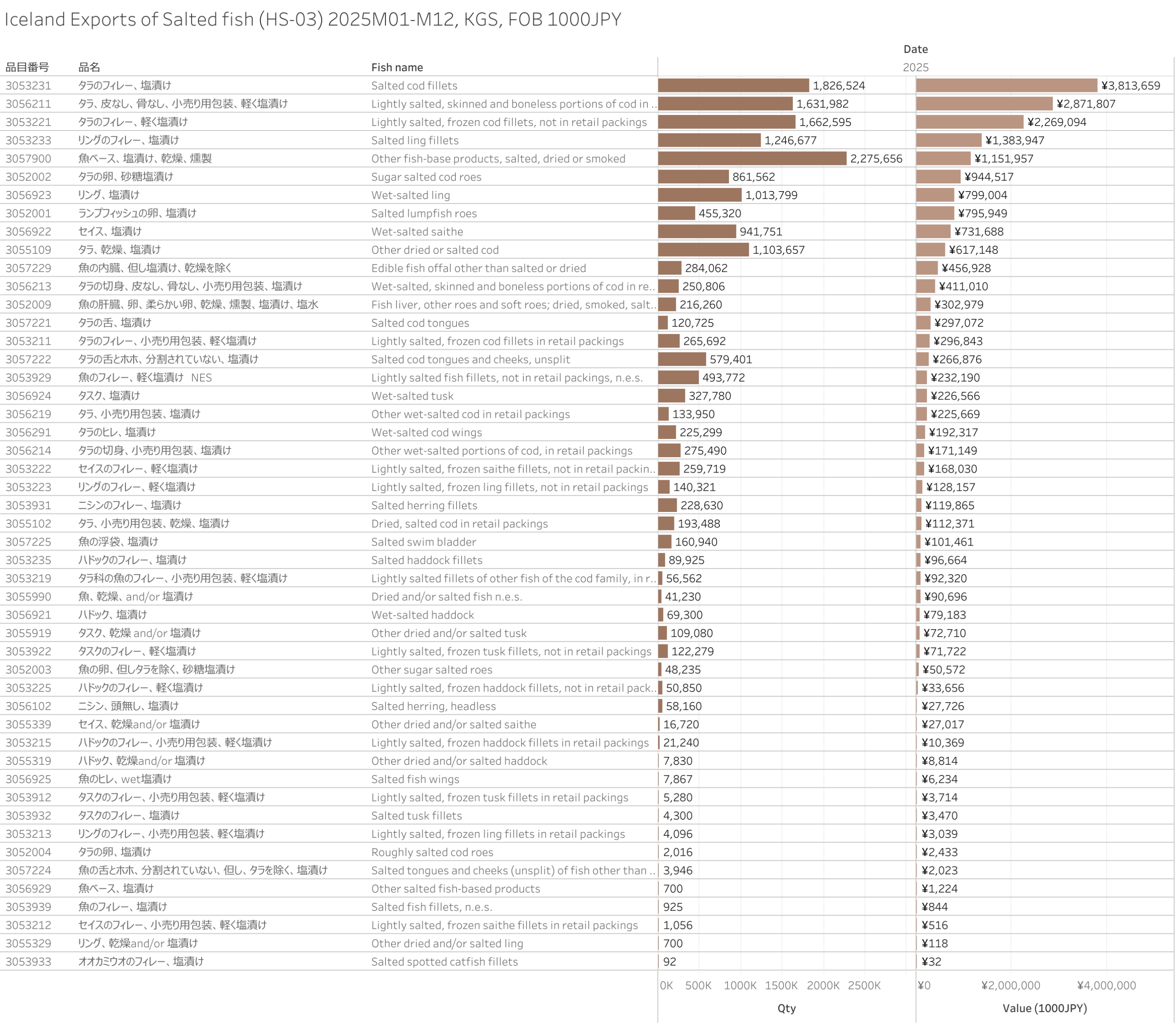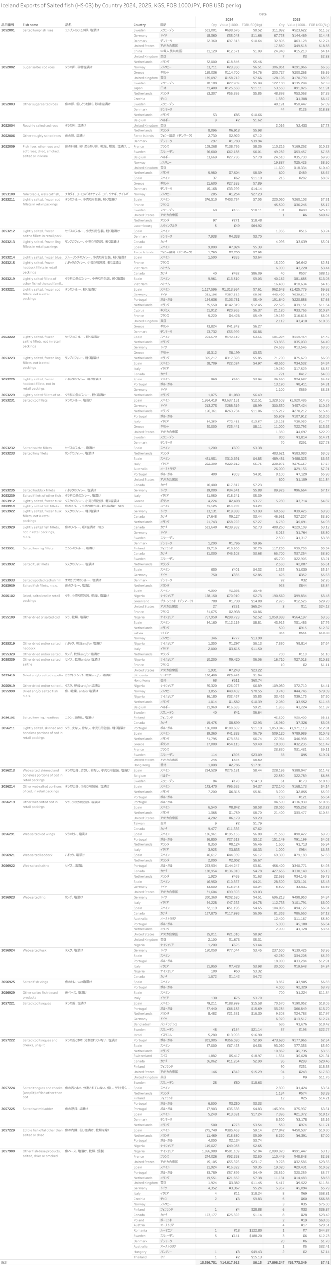 アイスランド 塩漬けの魚(HS-03)輸出統計 2025年12月まで