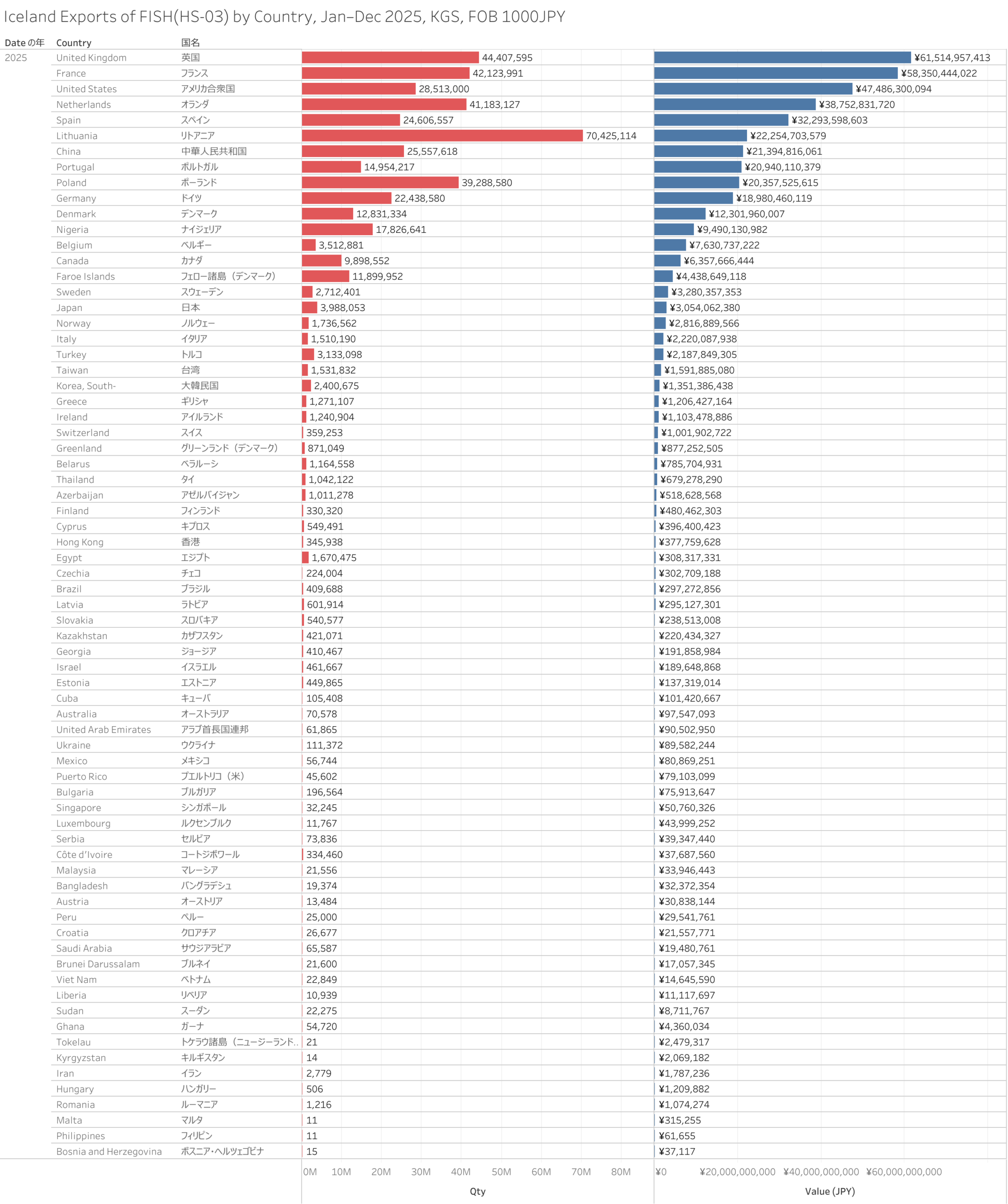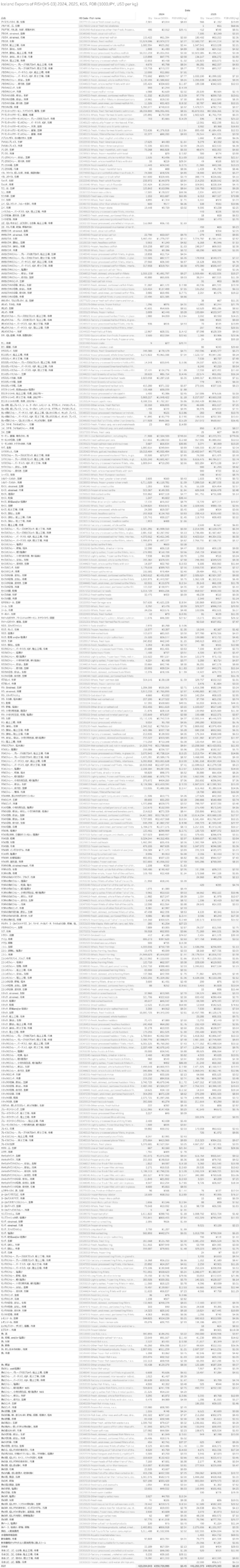 アイスランド 水産物(HS-03)輸出統計 2025年12月まで