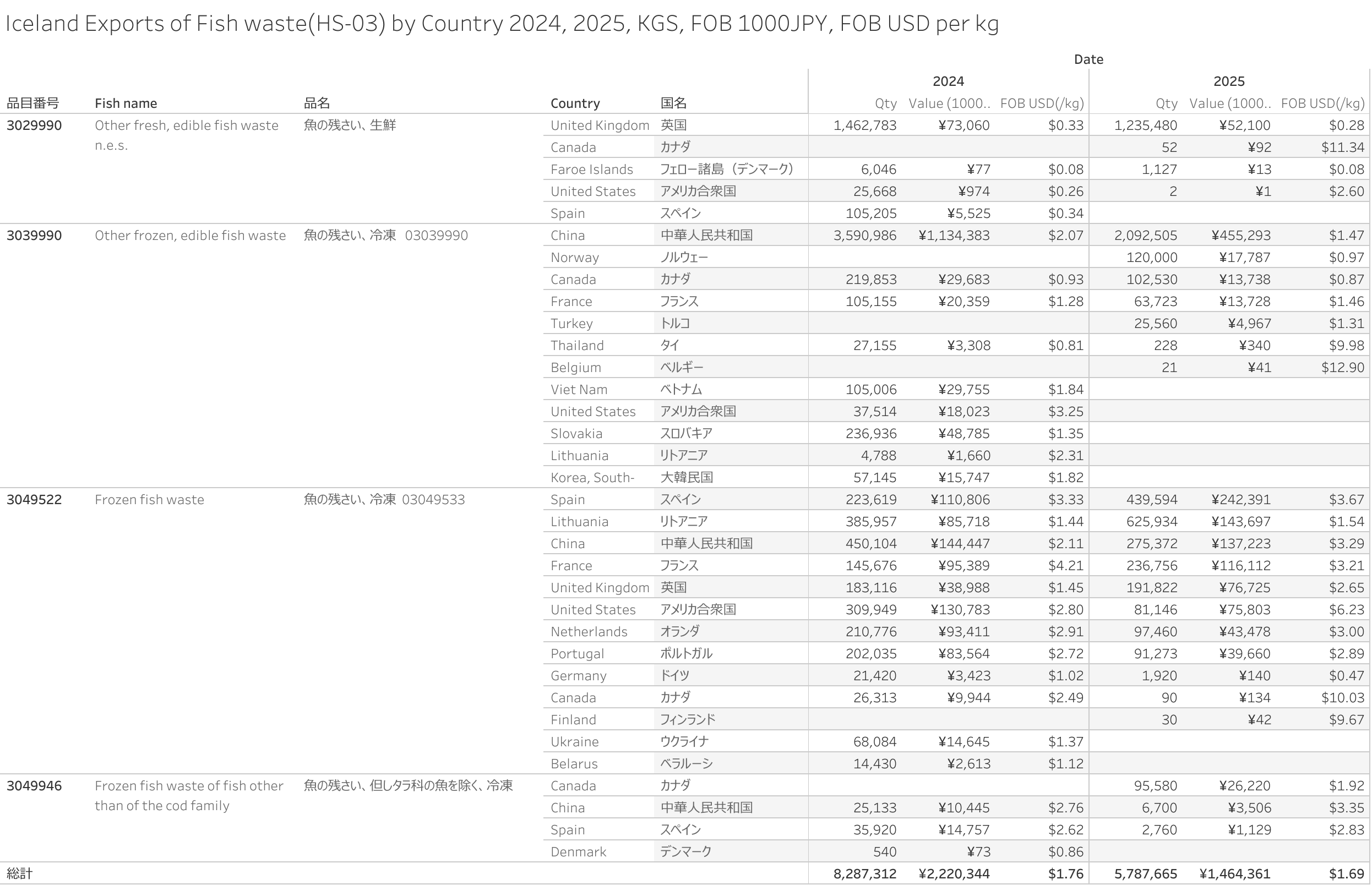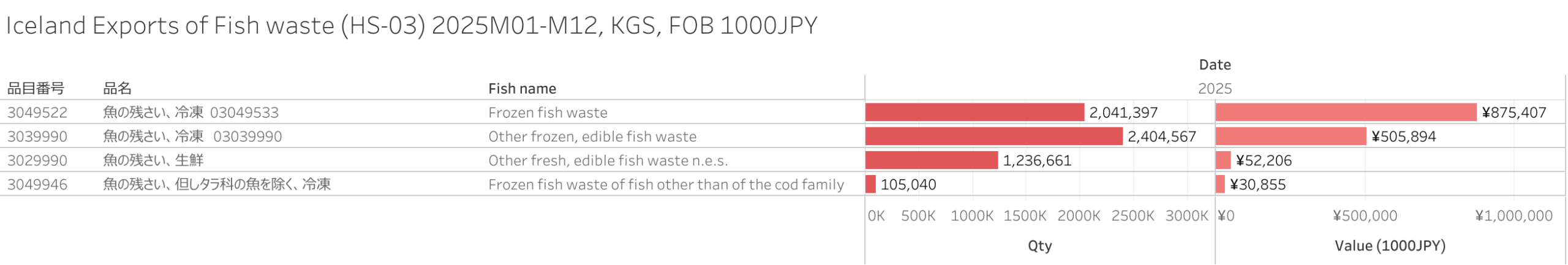 アイスランド 魚の残さい(HS-03)輸出統計 2025年12月まで