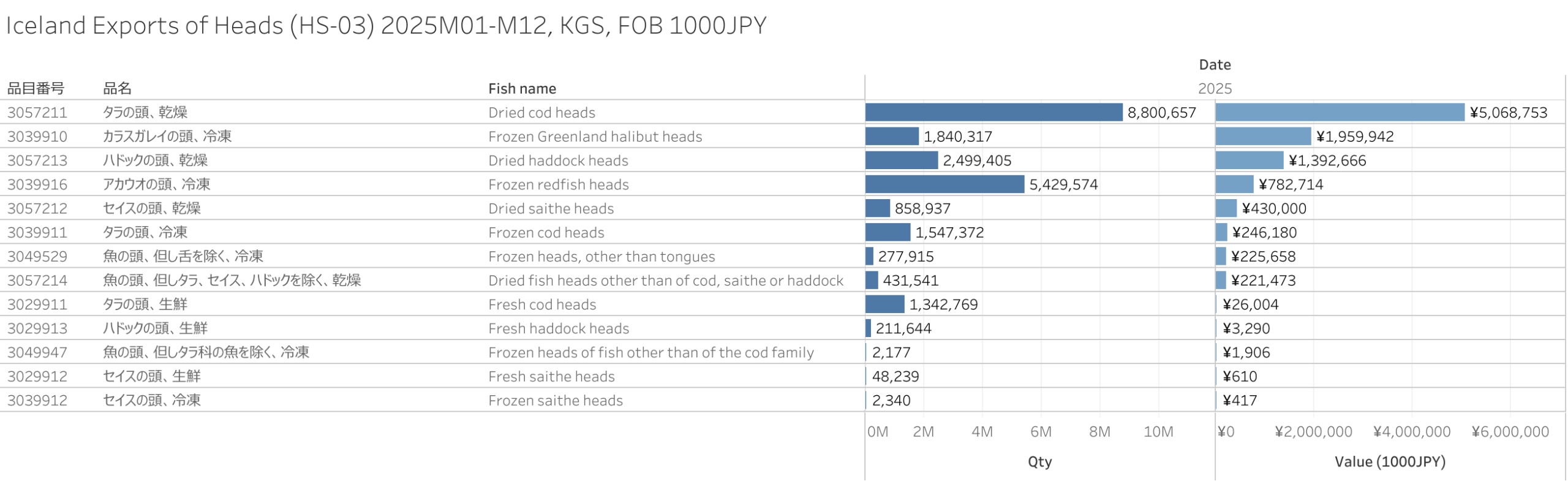 アイスランド 魚の頭(HS-03)輸出統計 2025年12月まで