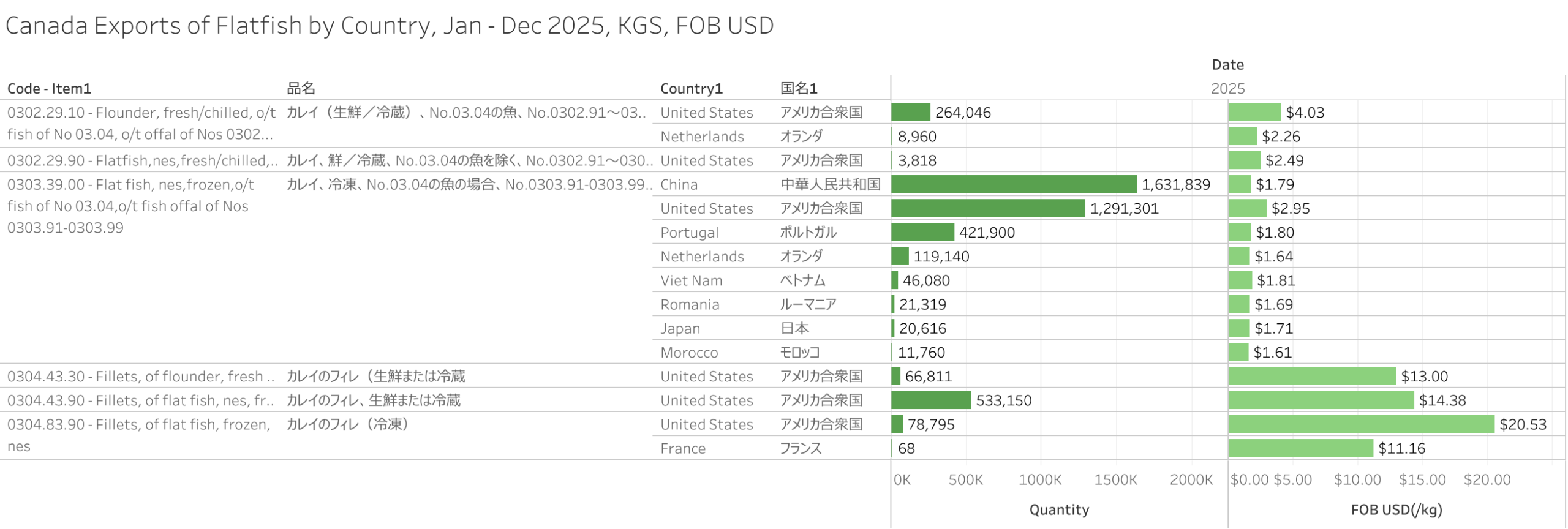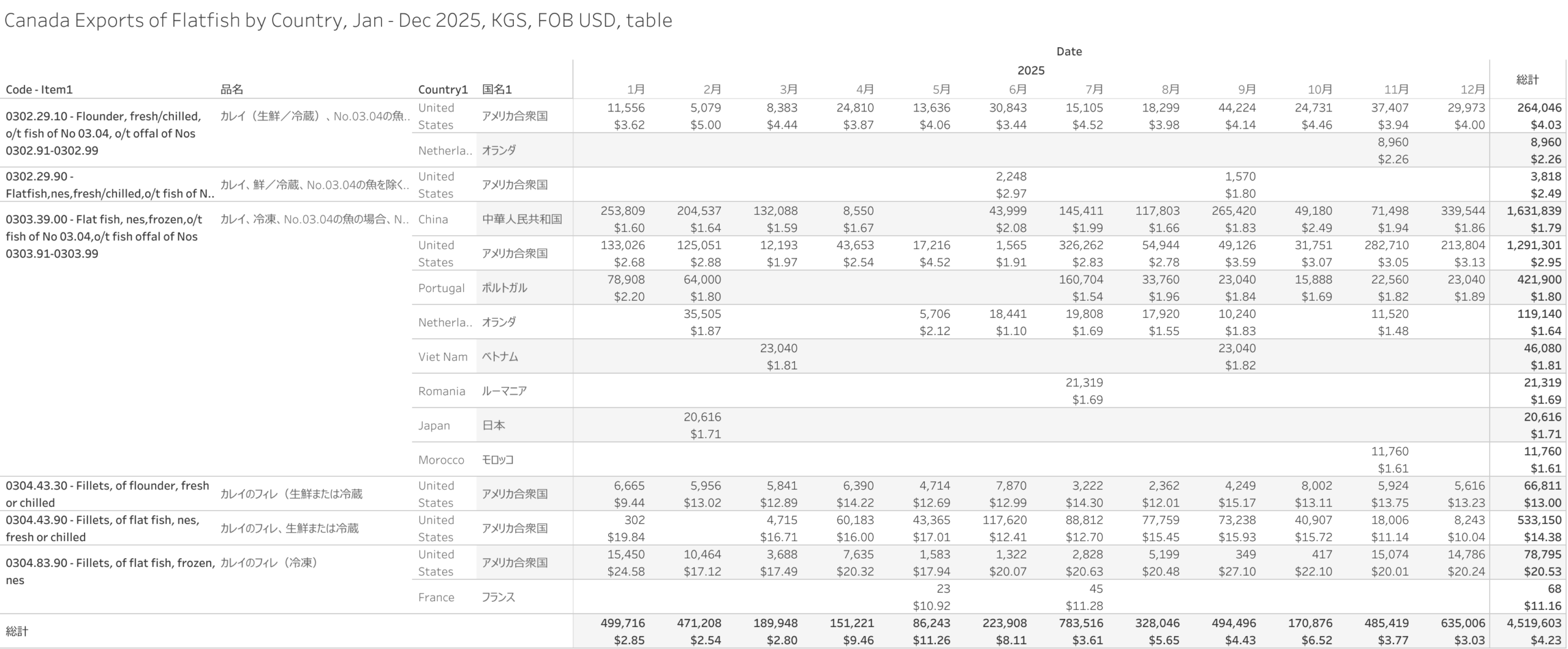 Canada Exports of Flatfish (HS-03) Jan - Dec 2025