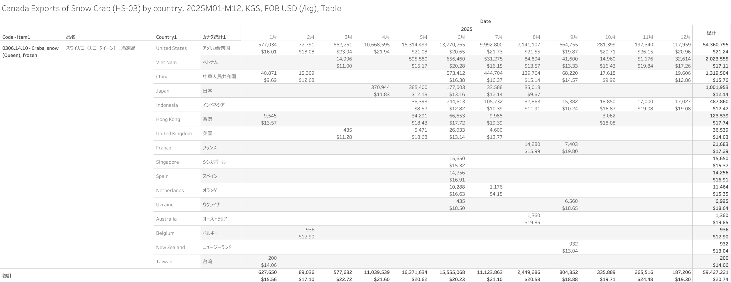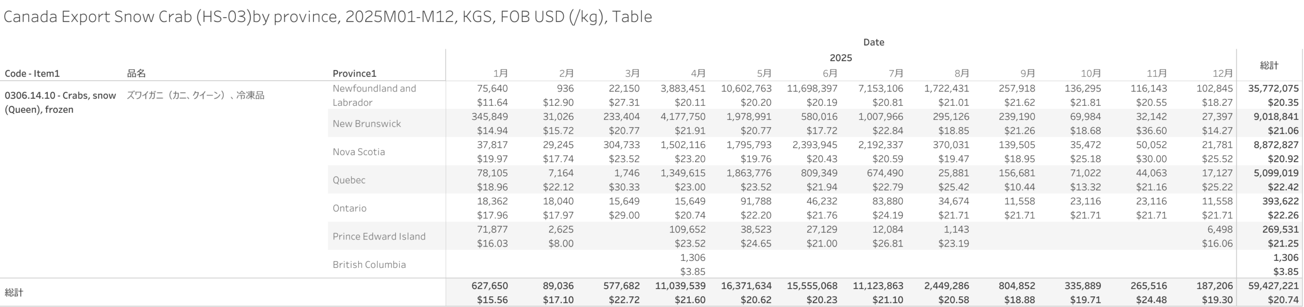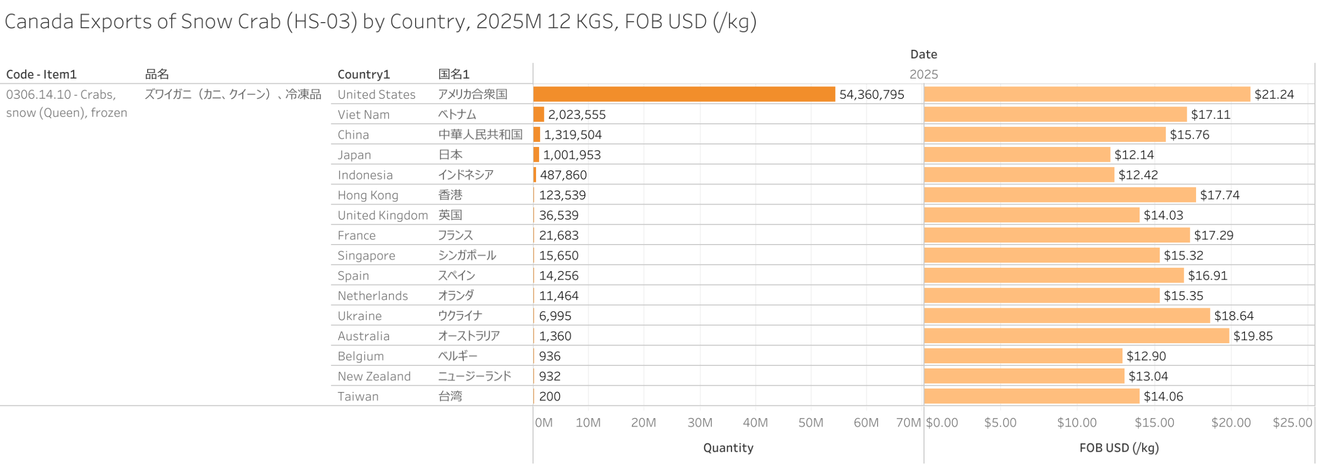 カナダ ズワイガニ(HS-03)輸出統計 2025年12月まで
