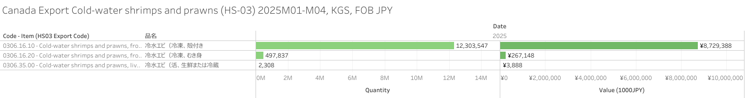 カナダ 冷水エビ(HS-03)輸出統計 2025年4月まで
