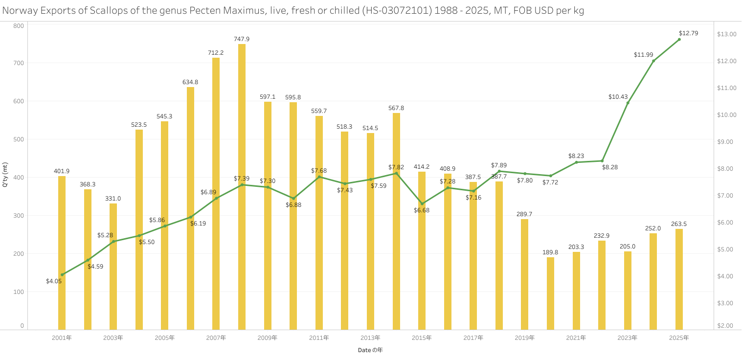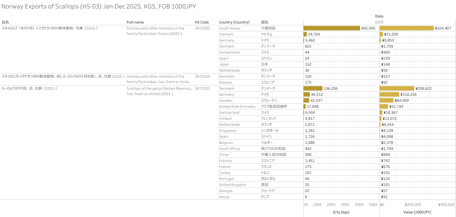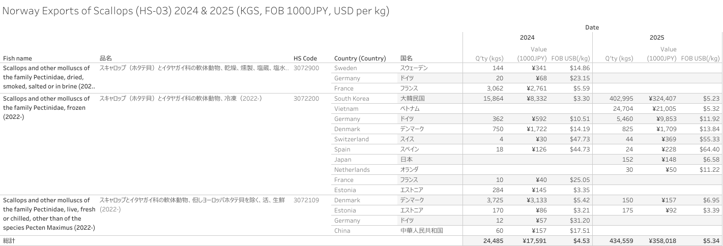 ノルウェー スキャロップ(HS-03)輸出統計 2025年01-12月