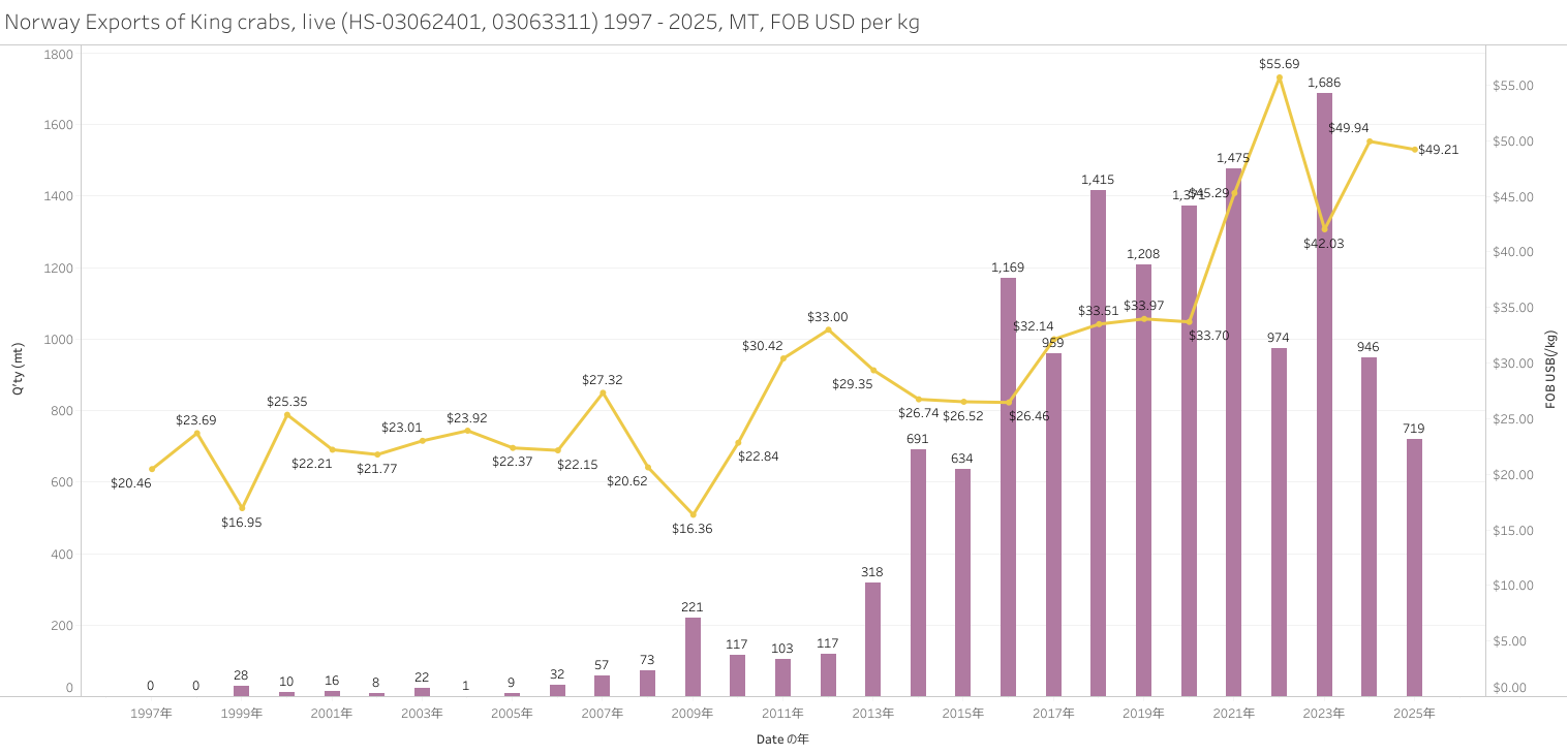 ノルウェー タラバガニ、活(HS-03)輸出統計 2025年01-12月