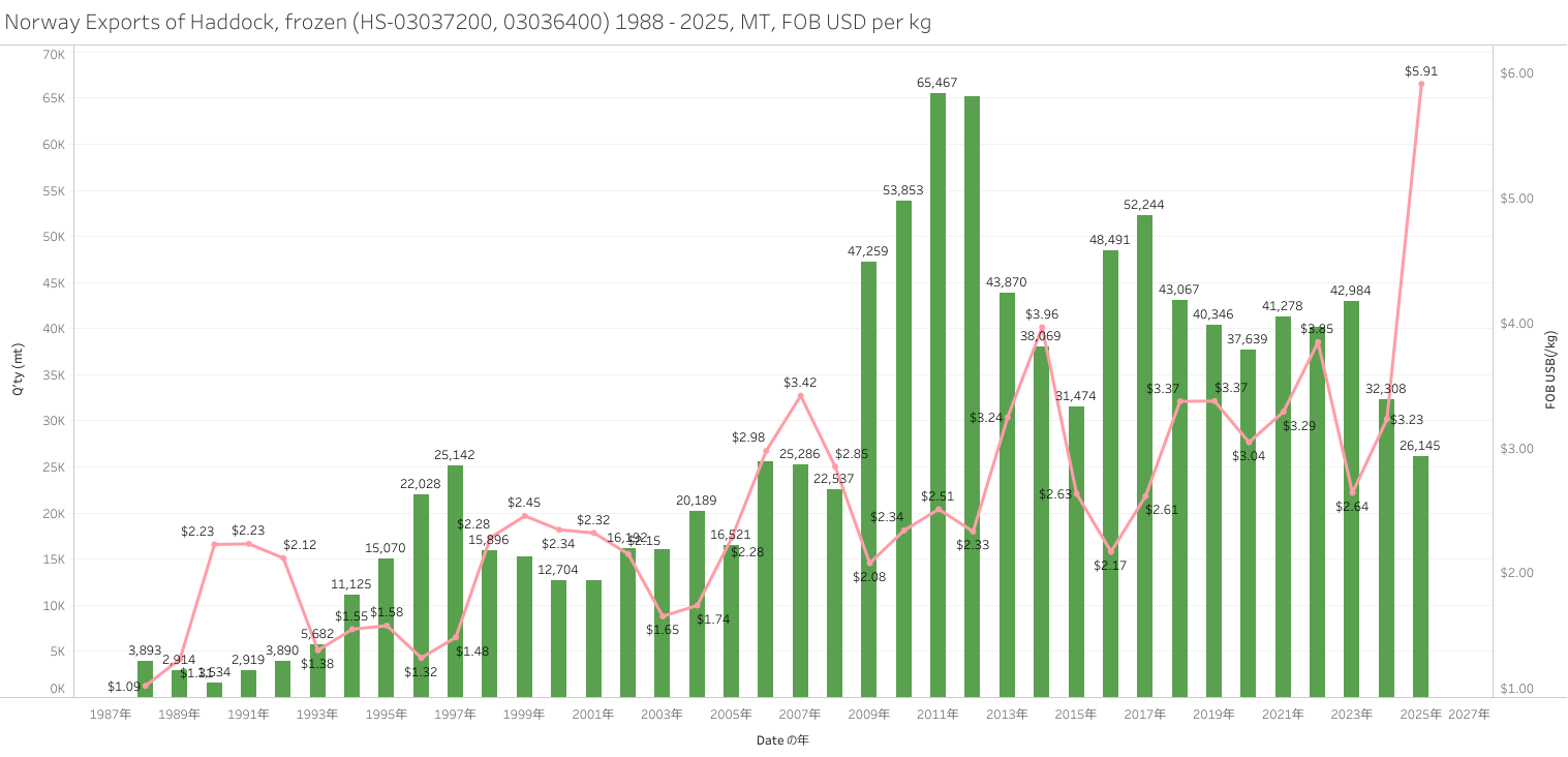 Norway Exports of Haddock, frozen (HS-03) Jan - Dec 2025