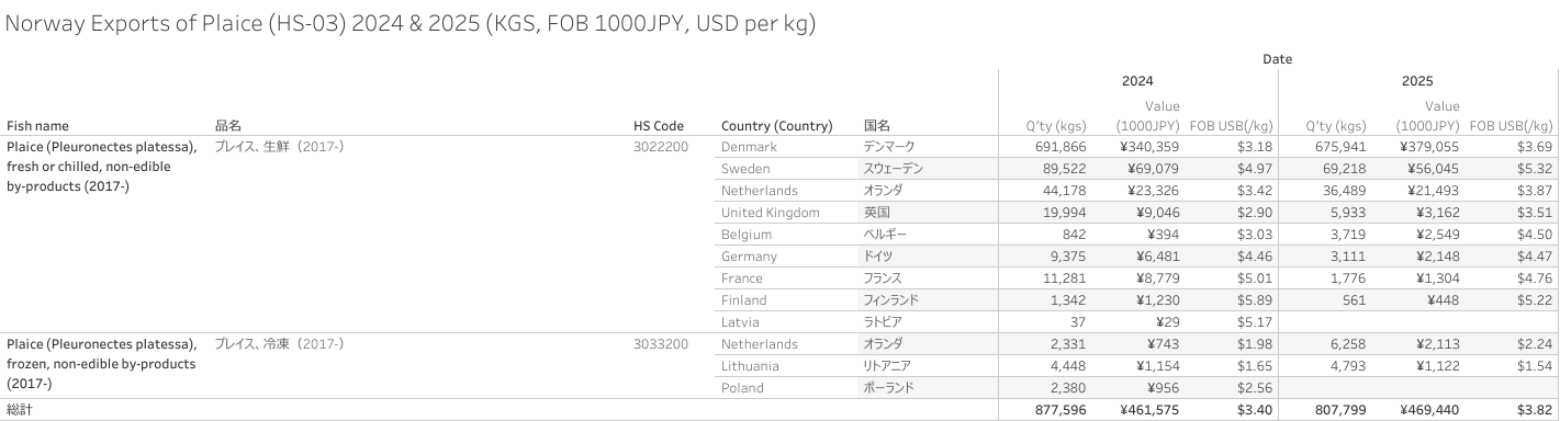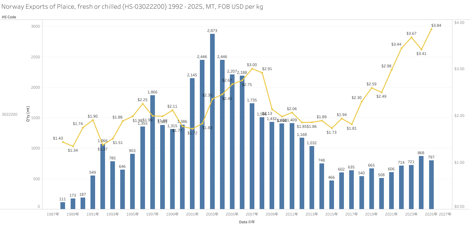 Norway Exports of Plaice (HS-03) Jan - Dec 2025