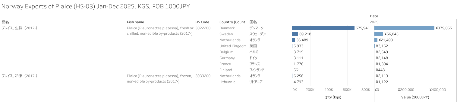 ノルウェー プレイス(HS-03)輸出統計 2025年01-12月