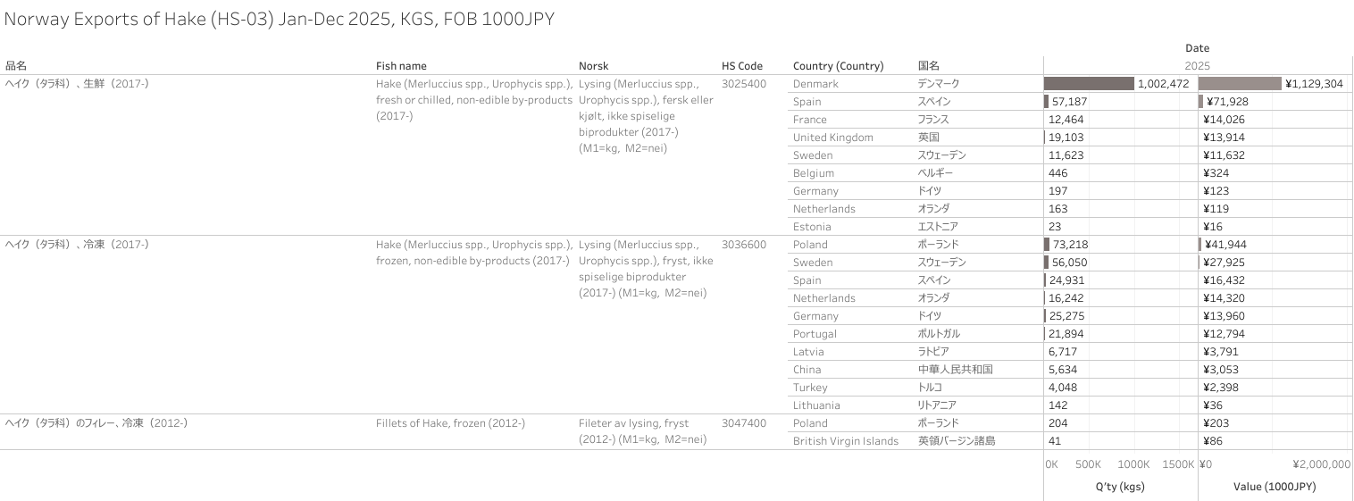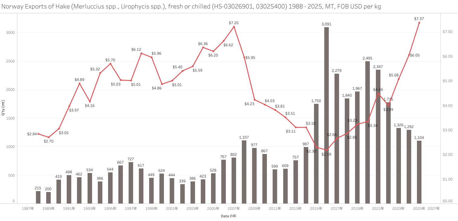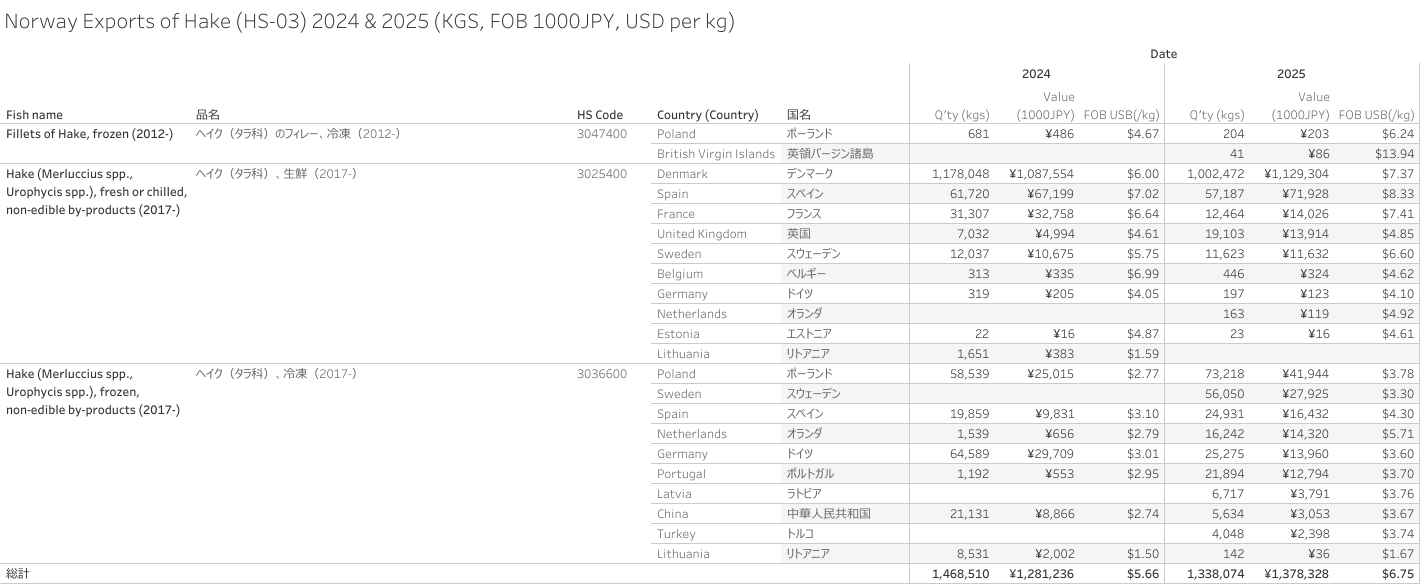 Norway Exports of Hake (HS-03) Jan - Dec 2025