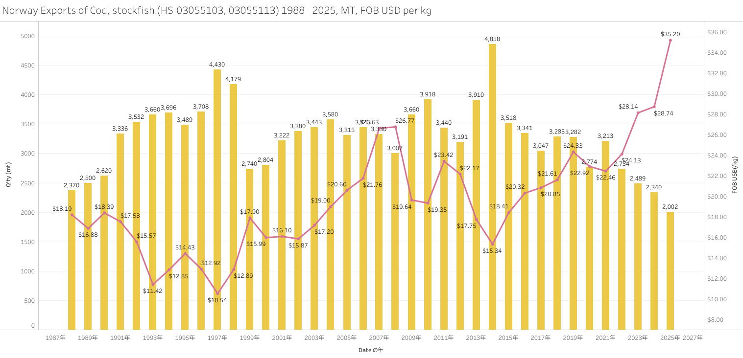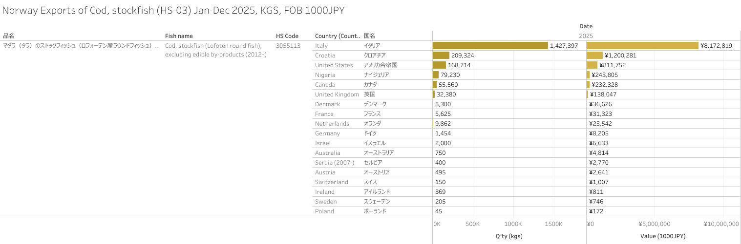 ノルウェー マダラのストックフィッシュ(HS-03)輸出統計 2025年01-12月