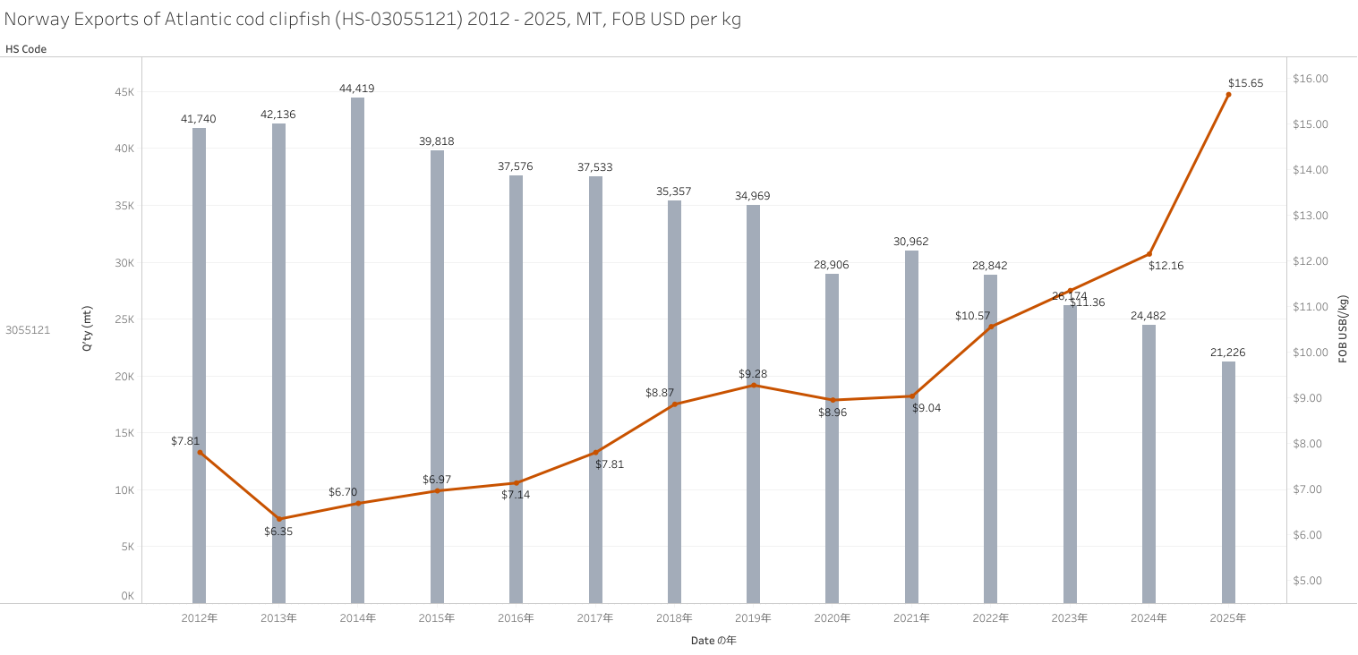 Norway Exports of Atlantic cod clipfish (HS-03) Jan - Dec 2025