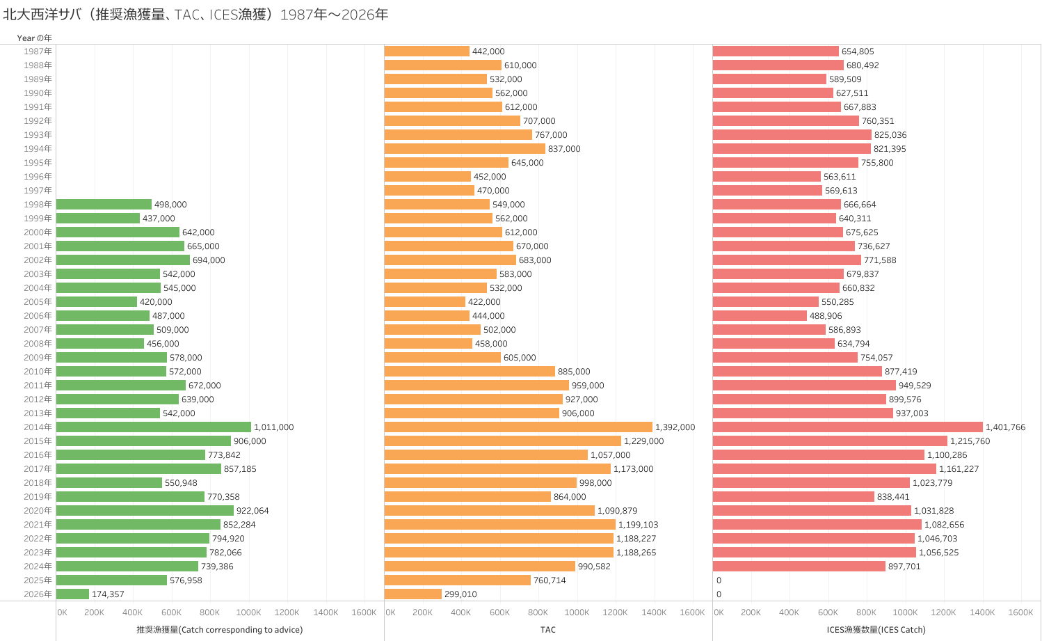 2026年のサバの総漁獲可能量(TAC)は299,010トンとされ、2025年から大幅に削減されました。ノルウェーの割当量は78,939トンです。ただし、国際海洋研究機関(ICES)は174,357トンを勧告しており、今回のTACは依然として科学的助言を上回っています。