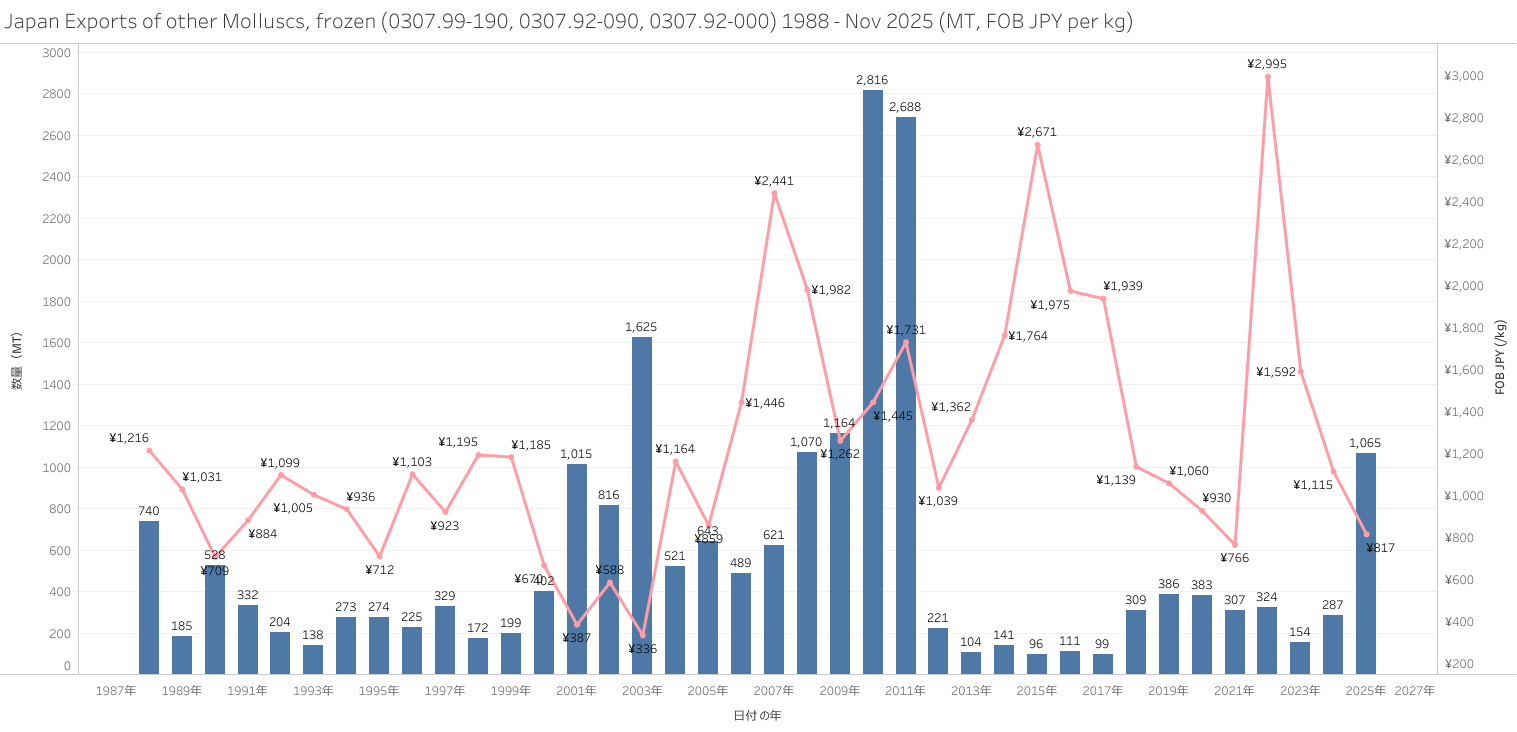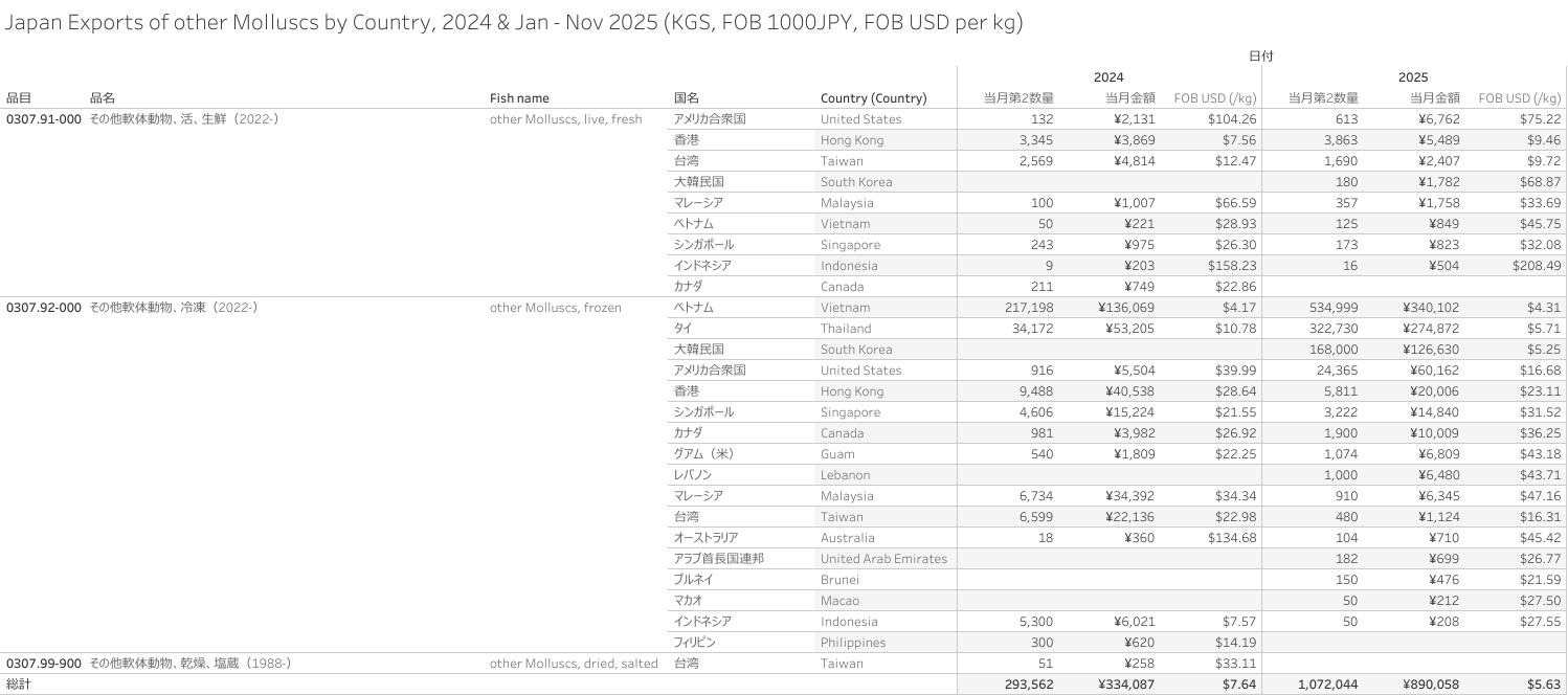 Japan Exports of other Molluscs (HS-03) Jan - Nov 2025