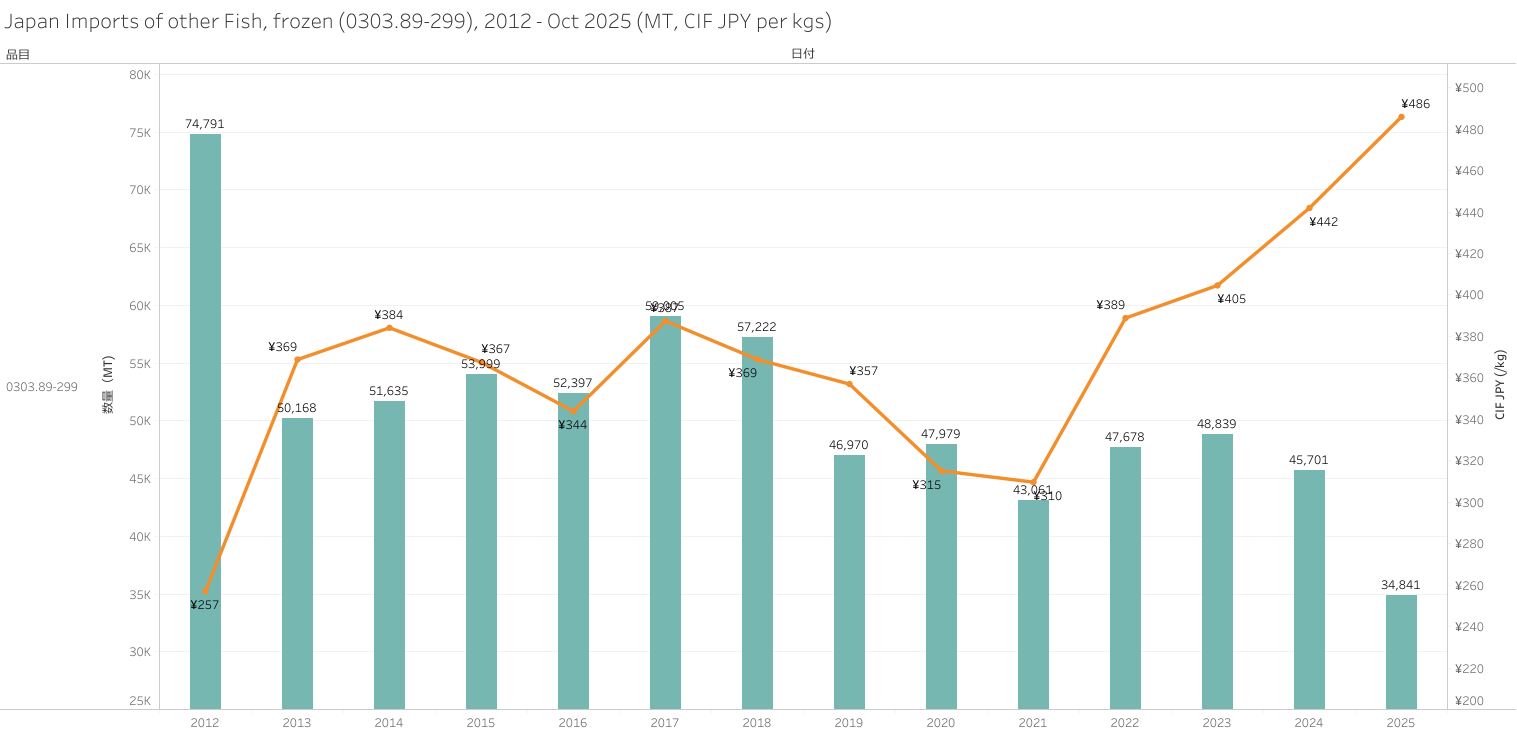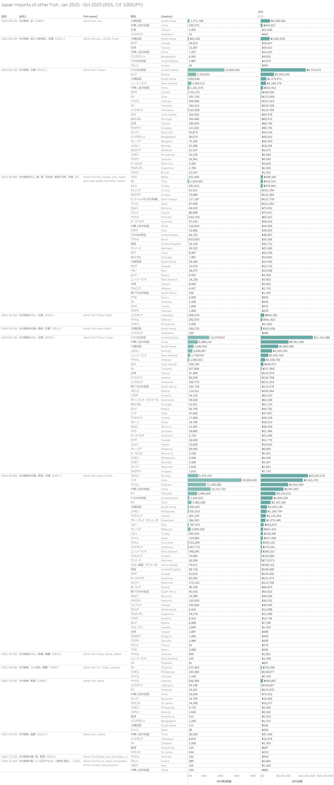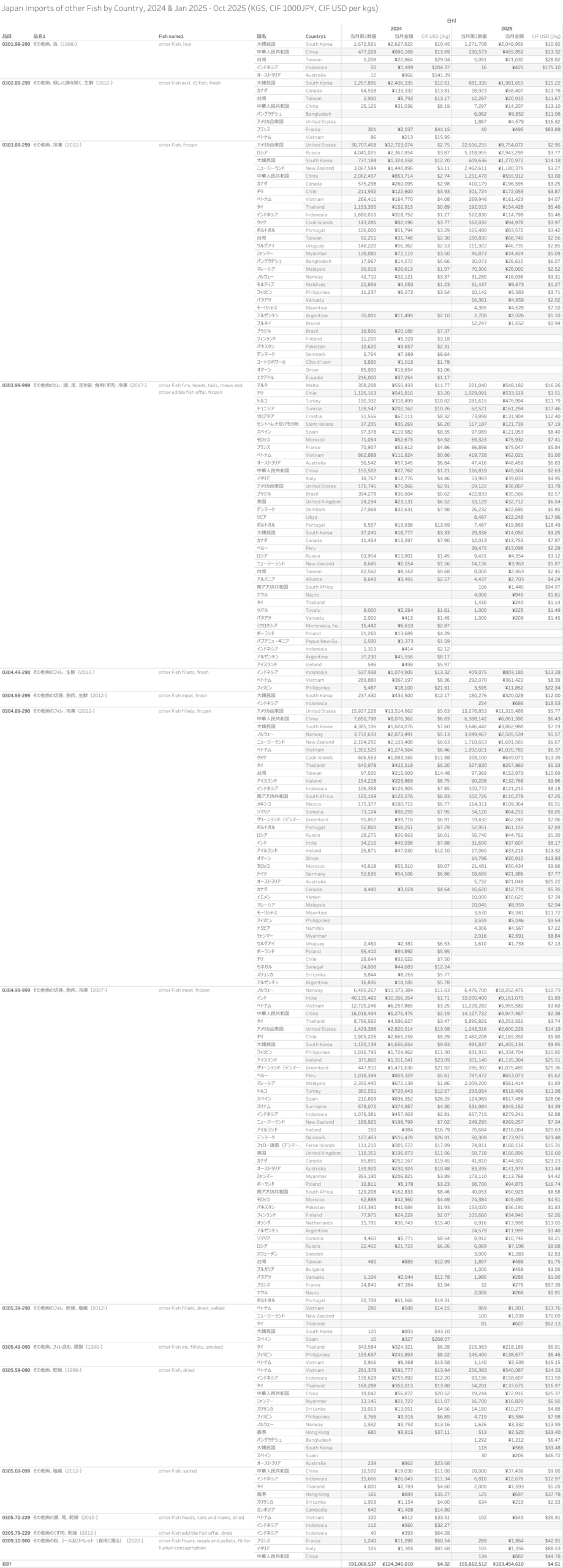 日本 その他魚(HS-03)輸入統計 2025年01月-10月