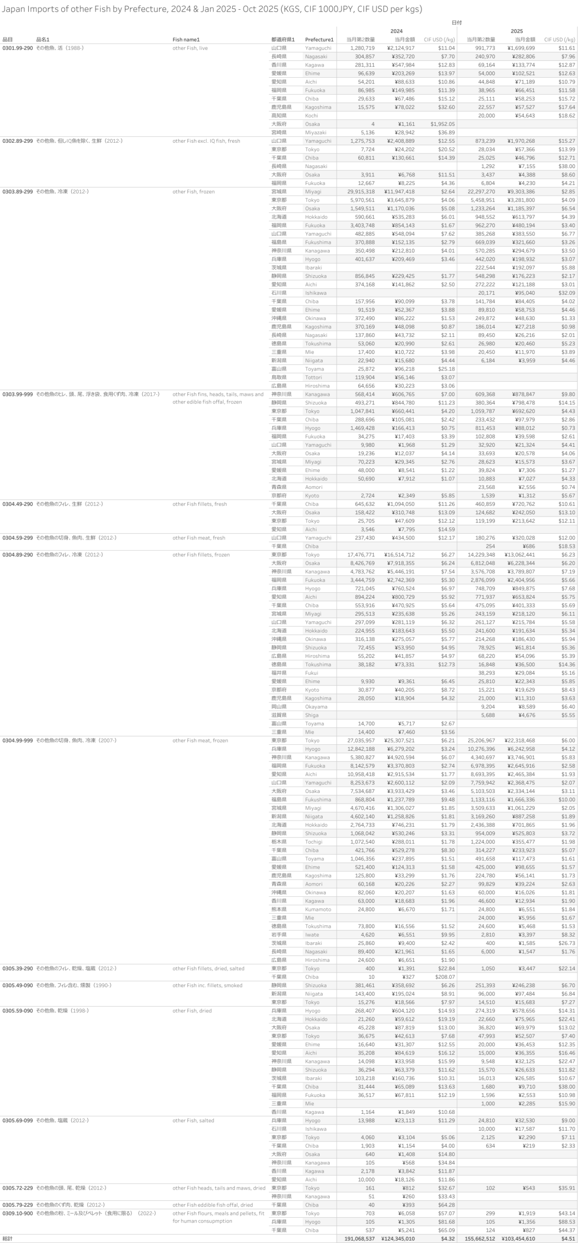 Japan Imports of other Fish (HS-03) Jan 2025 - Oct 2025