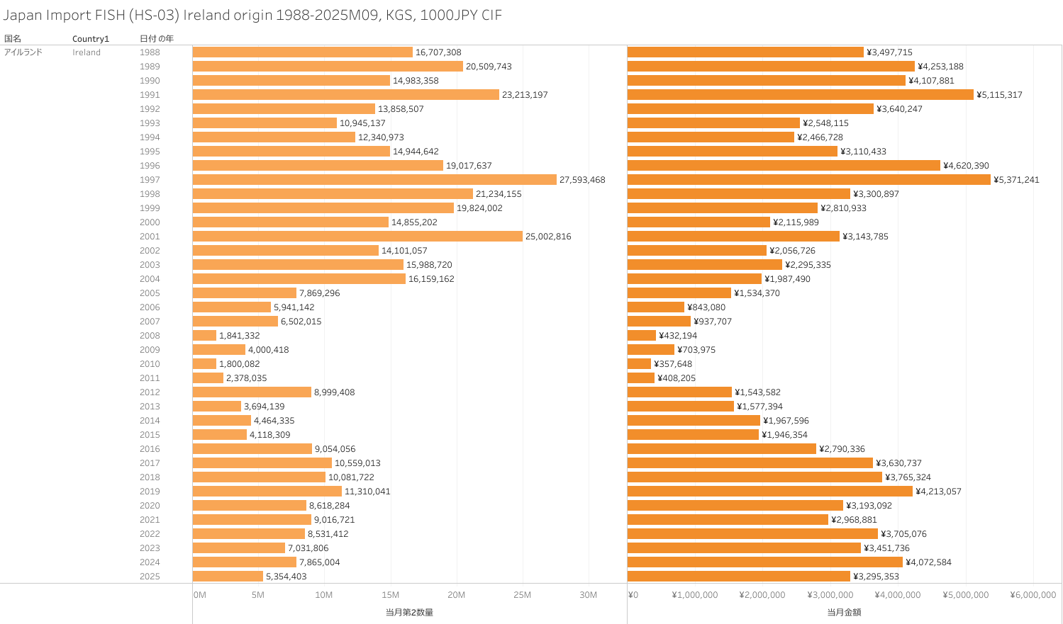 Japan Import FISH (HS-03) Ireland origin 2025M09