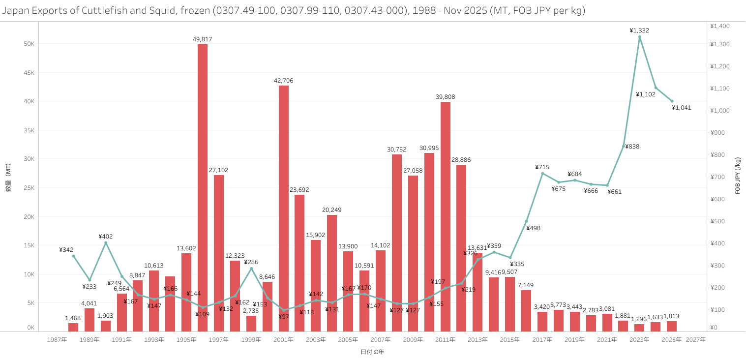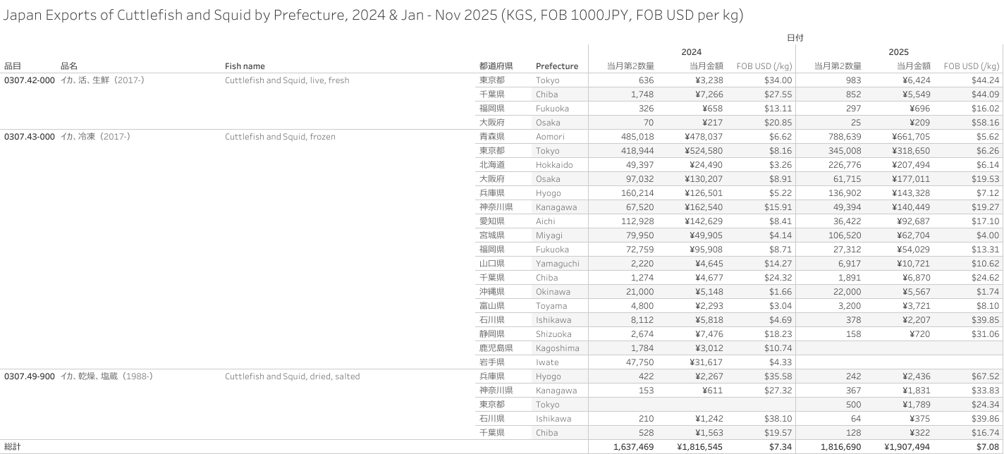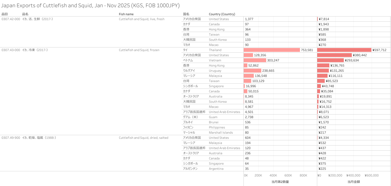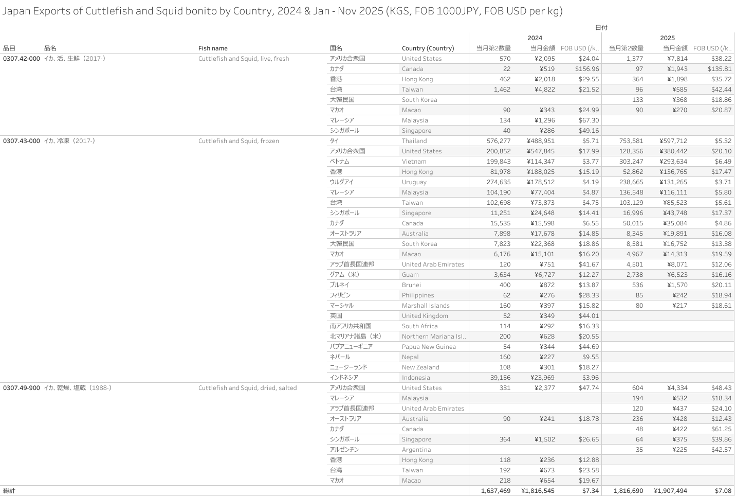 Japan Exports of Cuttlefish and Squid (HS-03) Jan - Nov 2025
