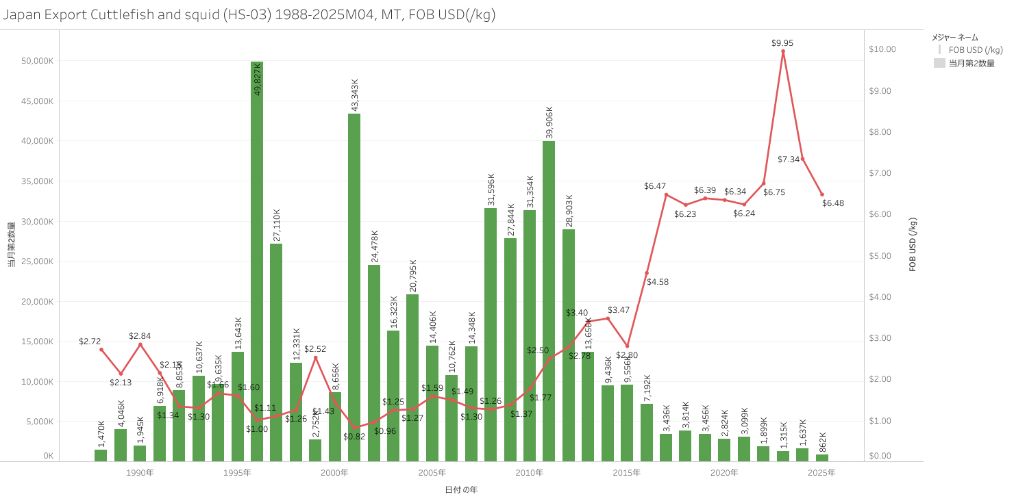 日本 イカ(HS-03)輸出統計 2025年4月まで