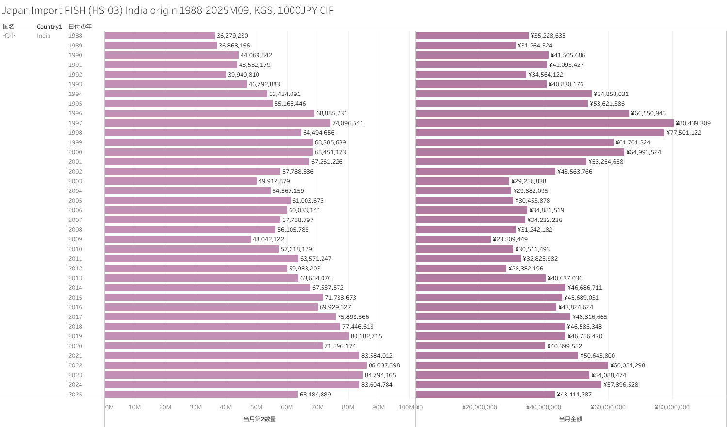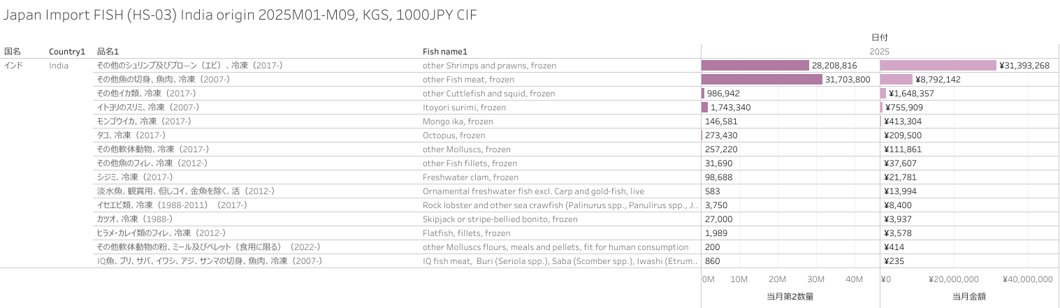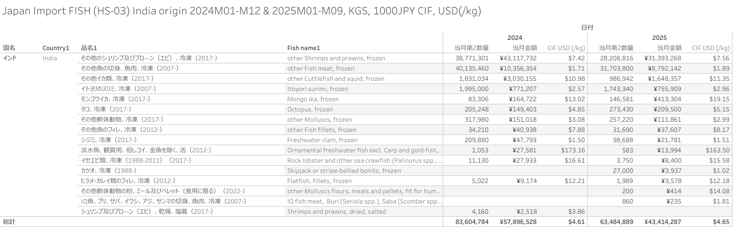 日本 インド産水産物(HS-03)輸入統計 2025年09月まで