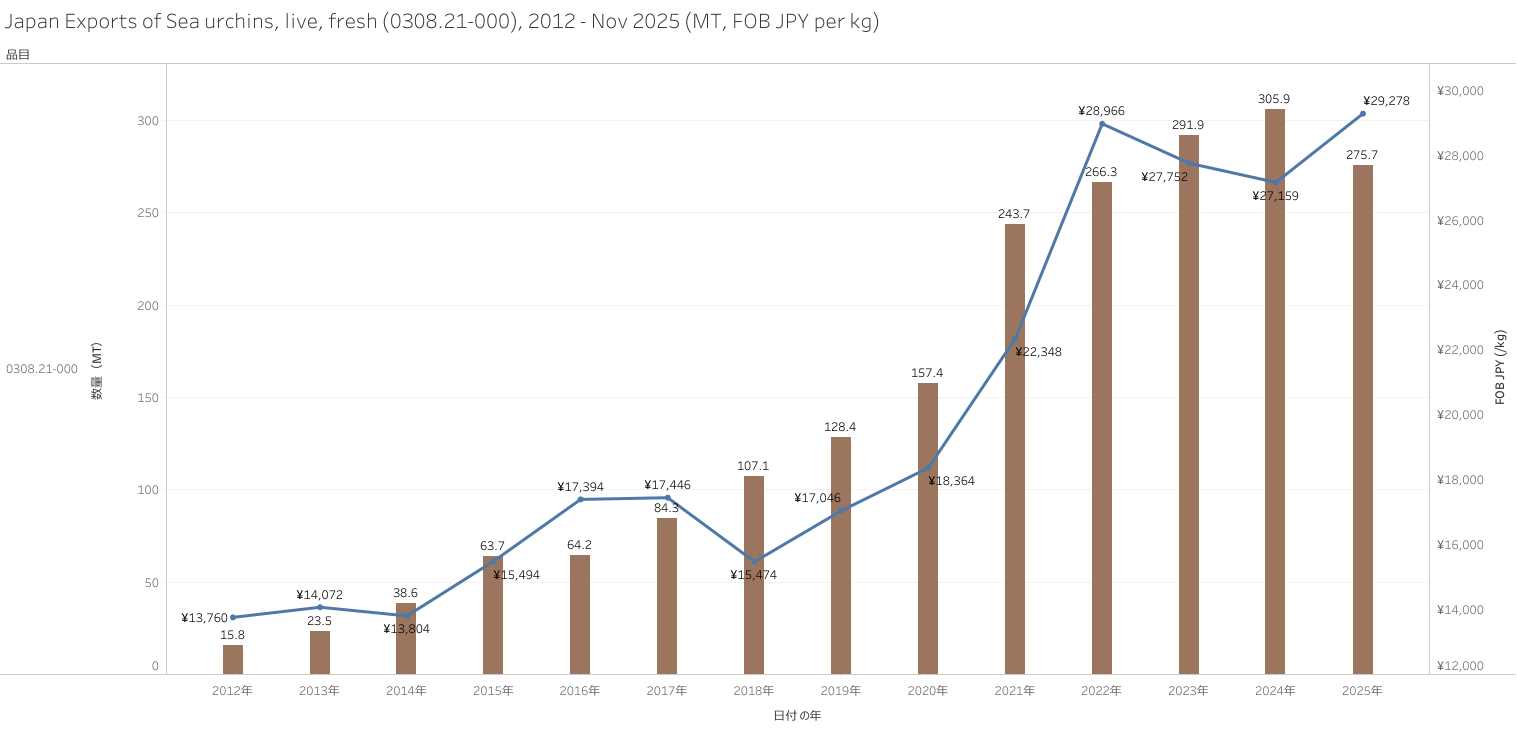 日本 ウニ(HS-03)輸出統計 2025年01月-11月