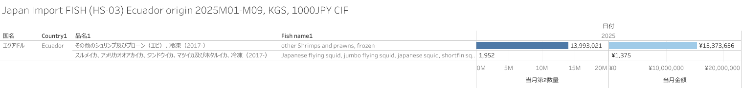 日本 エクアドル産水産物(HS-03)輸入統計 2025年09月まで