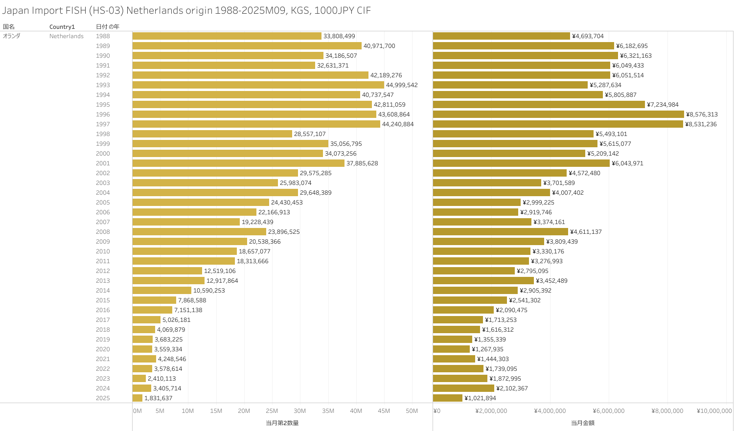 日本 オランダ産水産物(HS-03)輸入統計 2025年09月まで