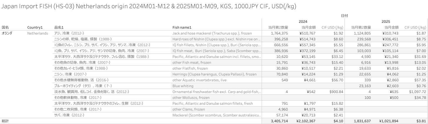 Japan Import FISH (HS-03) Netherlands origin 2025M09