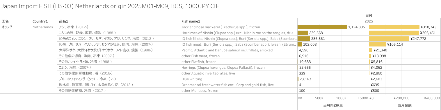 日本 オランダ産水産物(HS-03)輸入統計 2025年09月まで