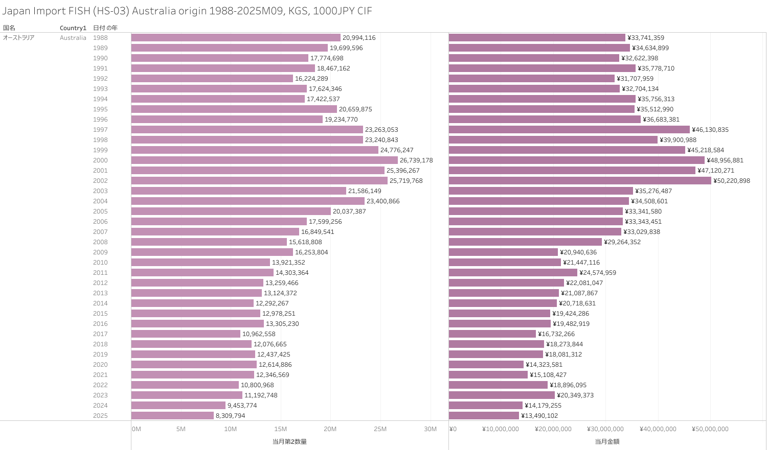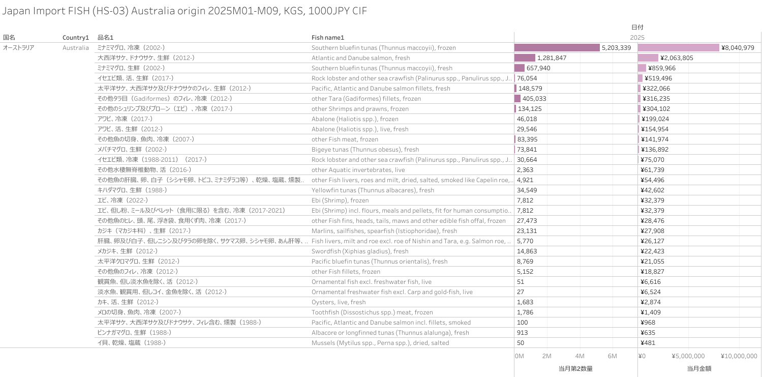 Japan Import FISH (HS-03) Australia origin 2025M09