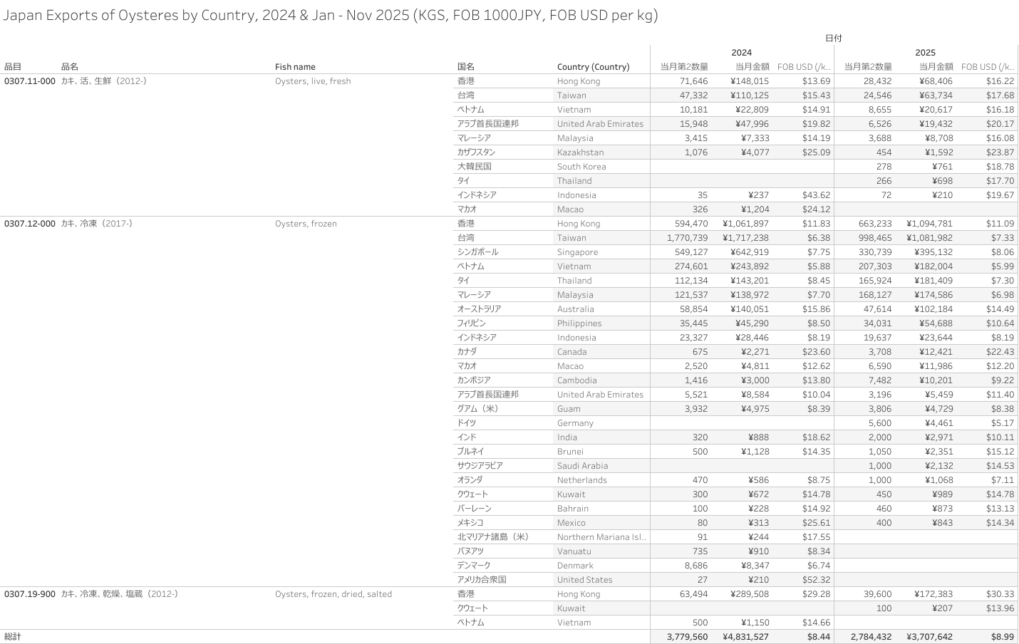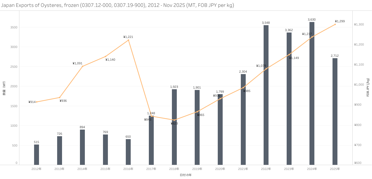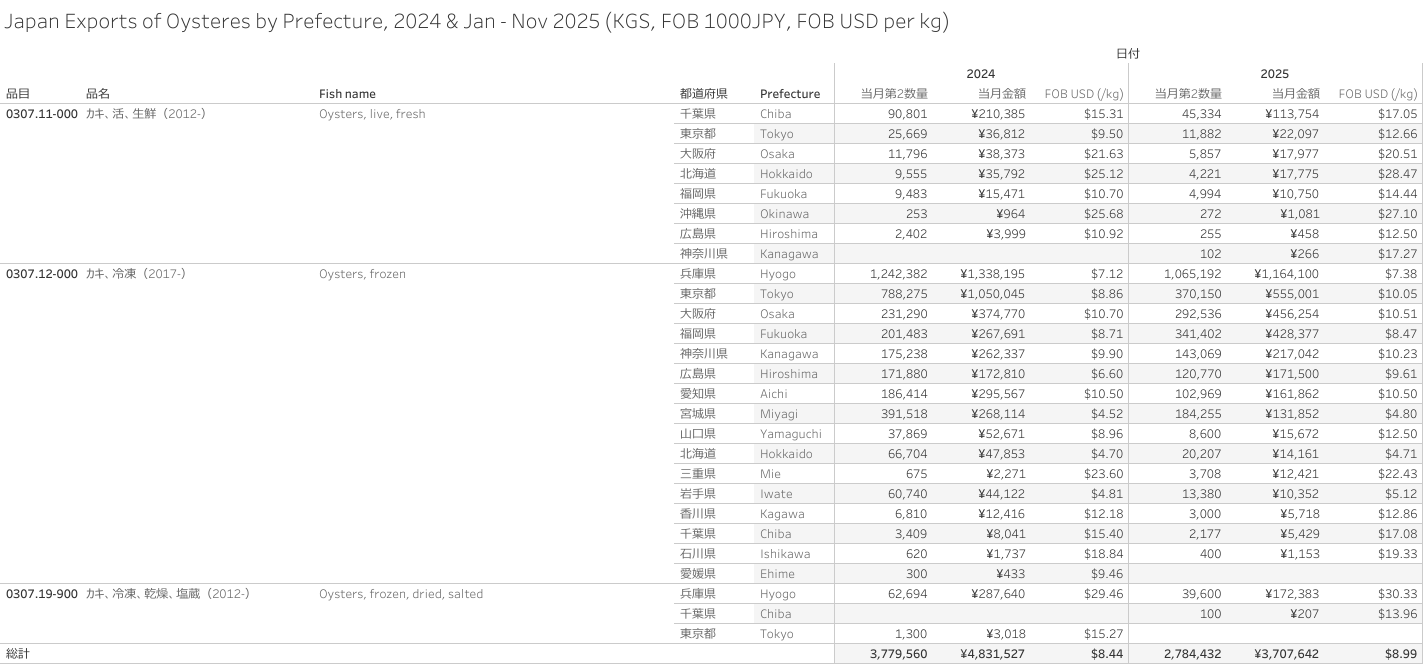 Japan Exports of Oysteres (HS-03) Jan - Nov 2025