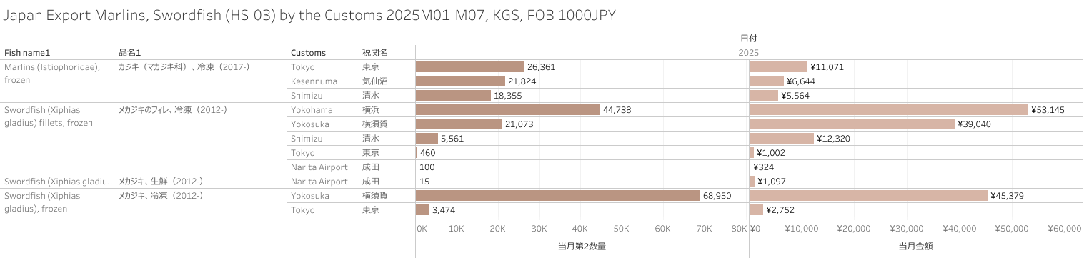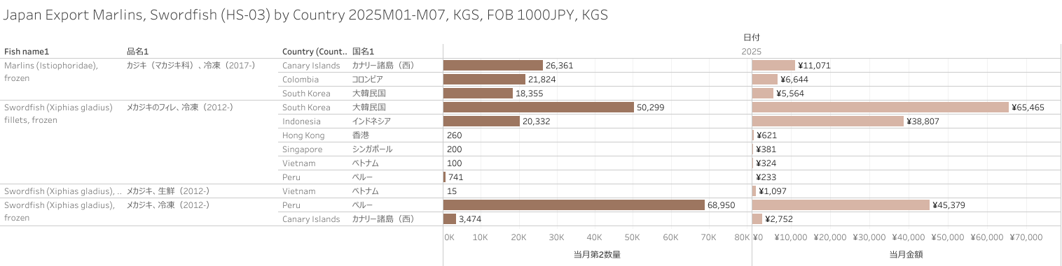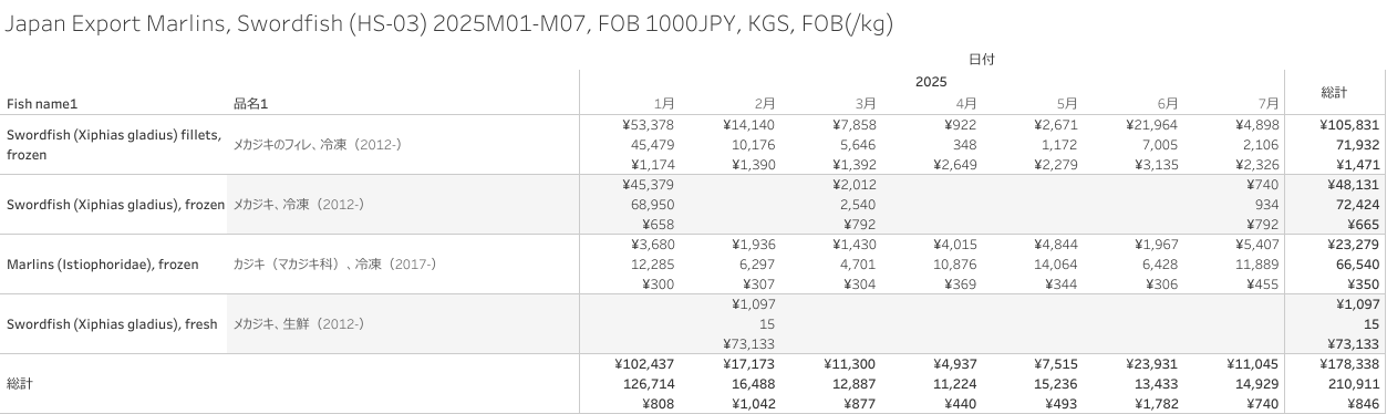 Japan Export Marlins, Swordfish (HS-03) 2025M07