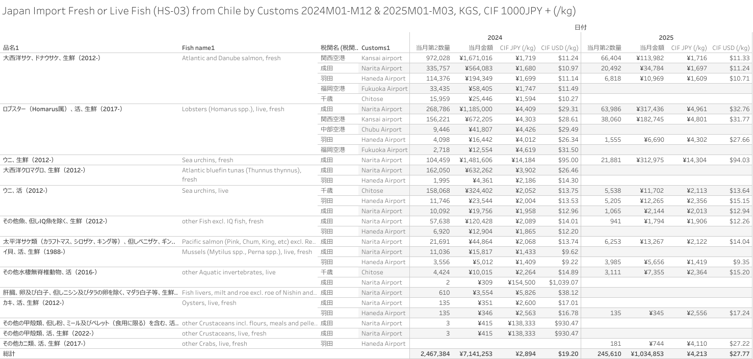 Japan Import Fresh or Live Fish (HS-03) from Canada 2024M12 & 2025M03
