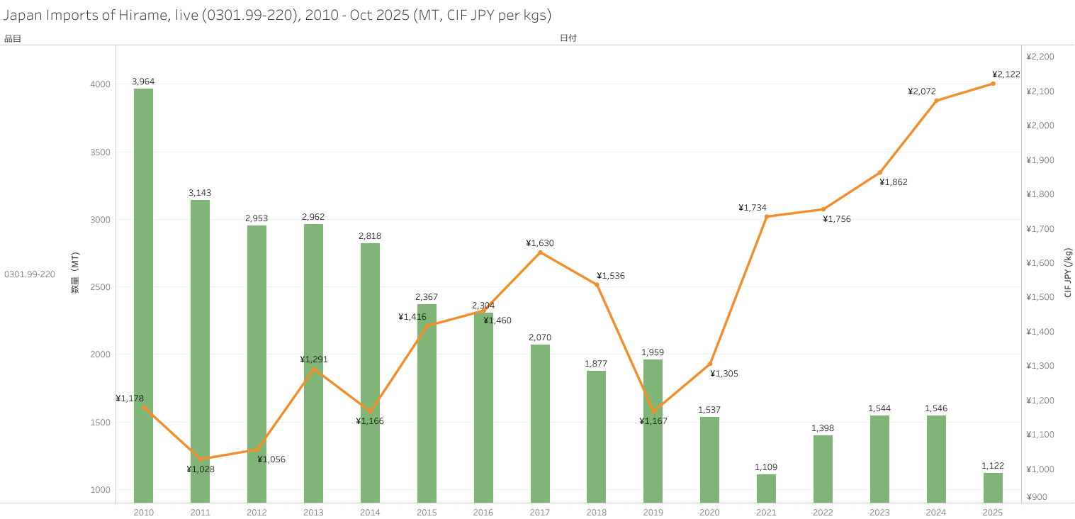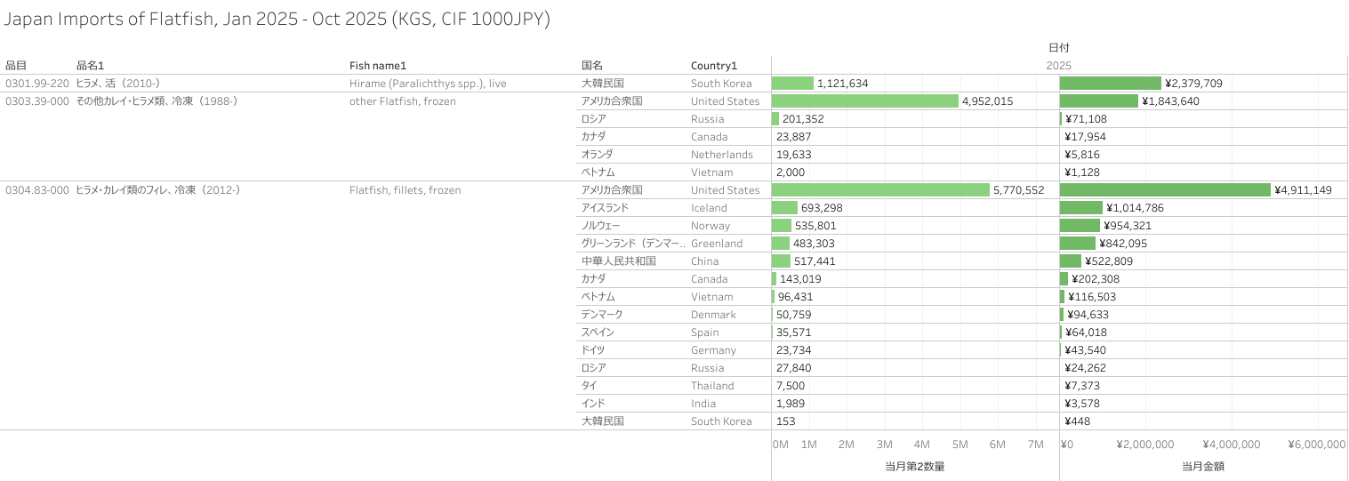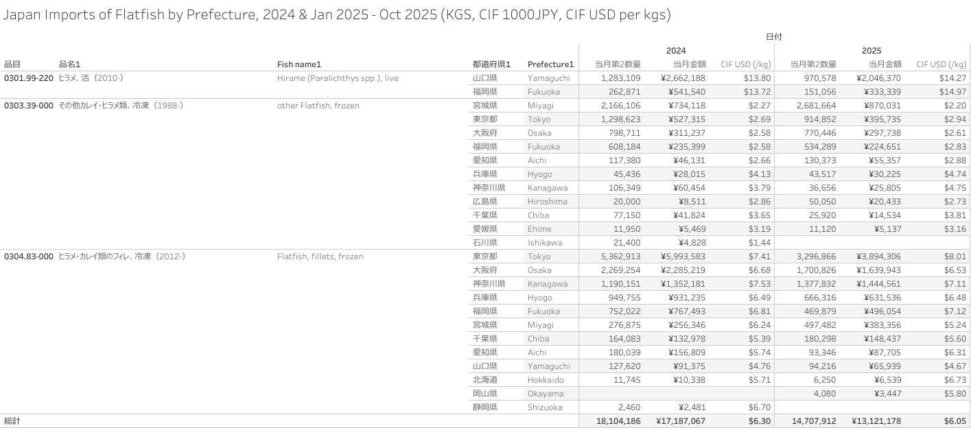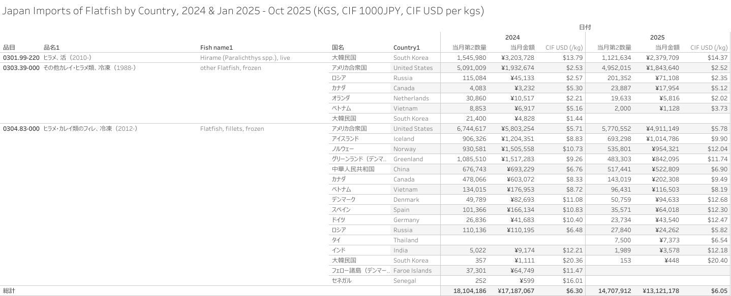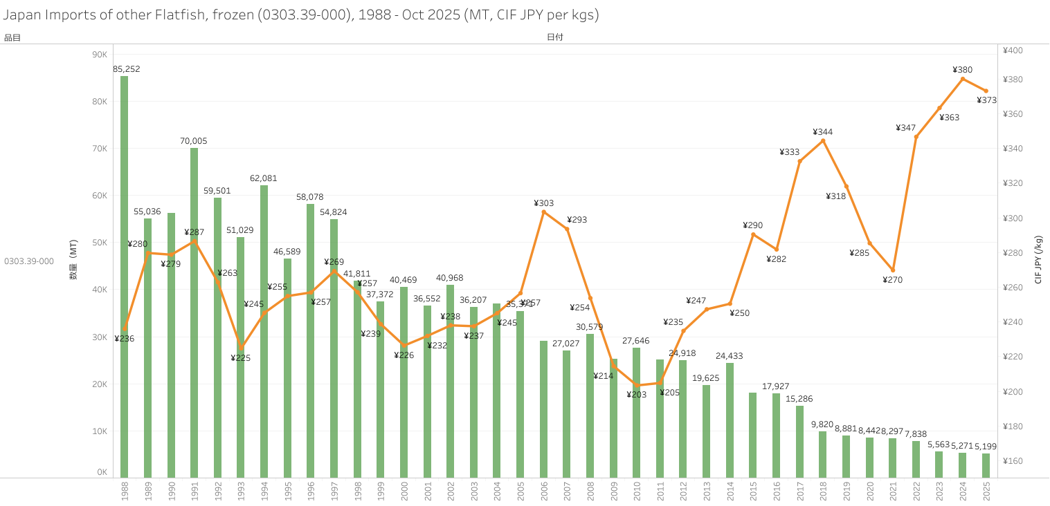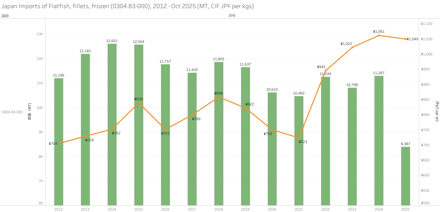 Japan Imports of Flatfish (HS-03) Jan 2025 - Oct 2025