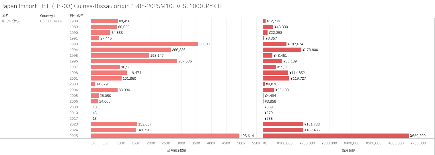 日本 ギニア・ビサウ産水産物(HS-03)輸入統計 2025年10月まで