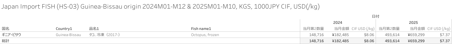Japan Import FISH (HS-03) Guinea-Bissau origin 2025M10