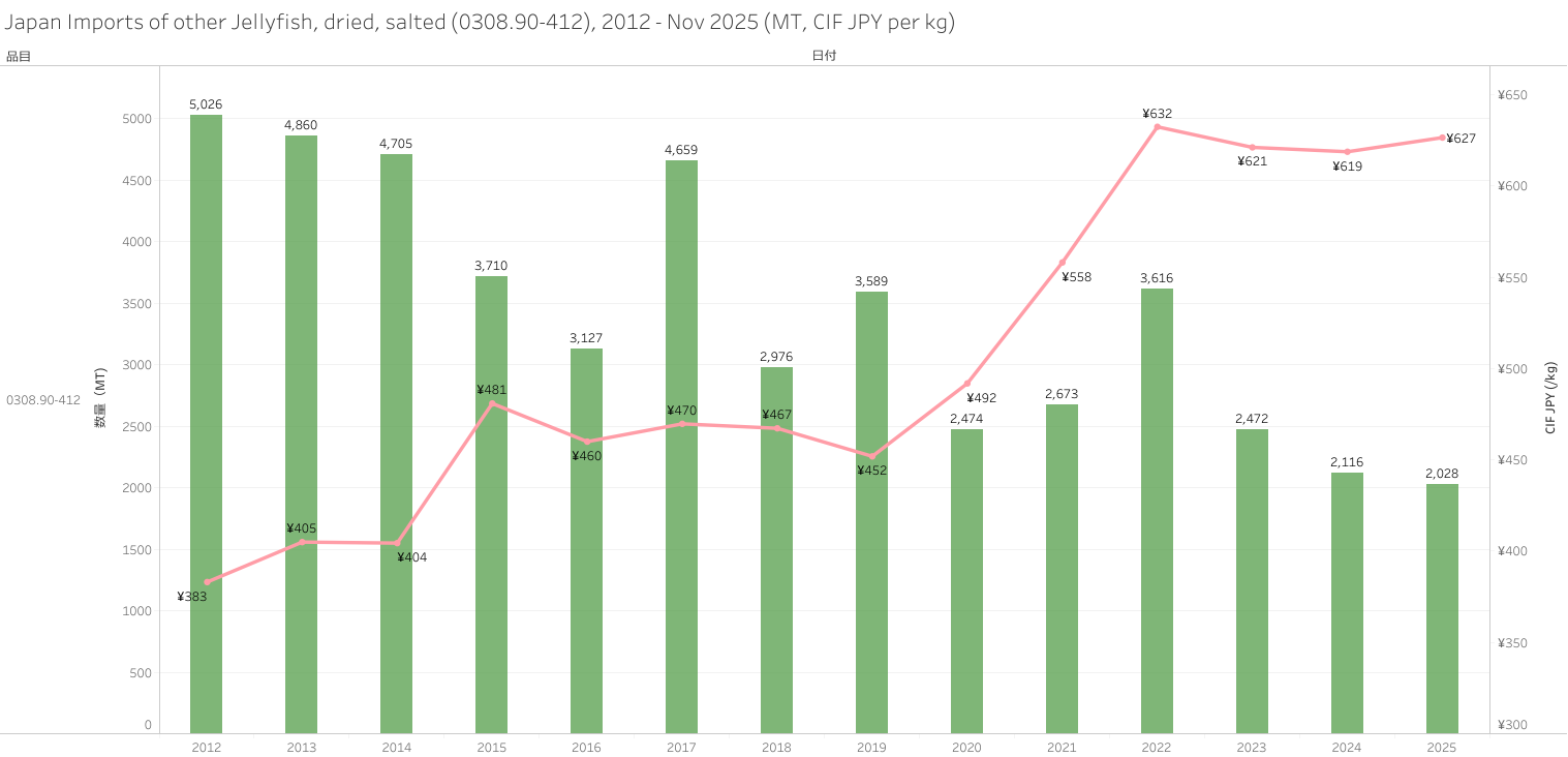 日本 クラゲ(HS-03)輸入統計 2025年01月-11月