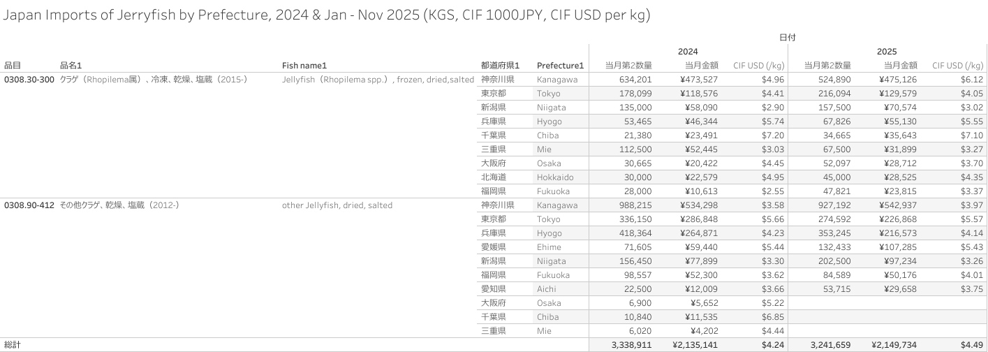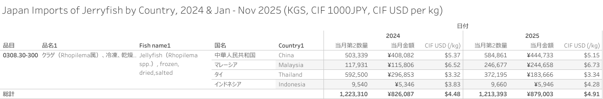 日本 クラゲ(HS-03)輸入統計 2025年01月-11月