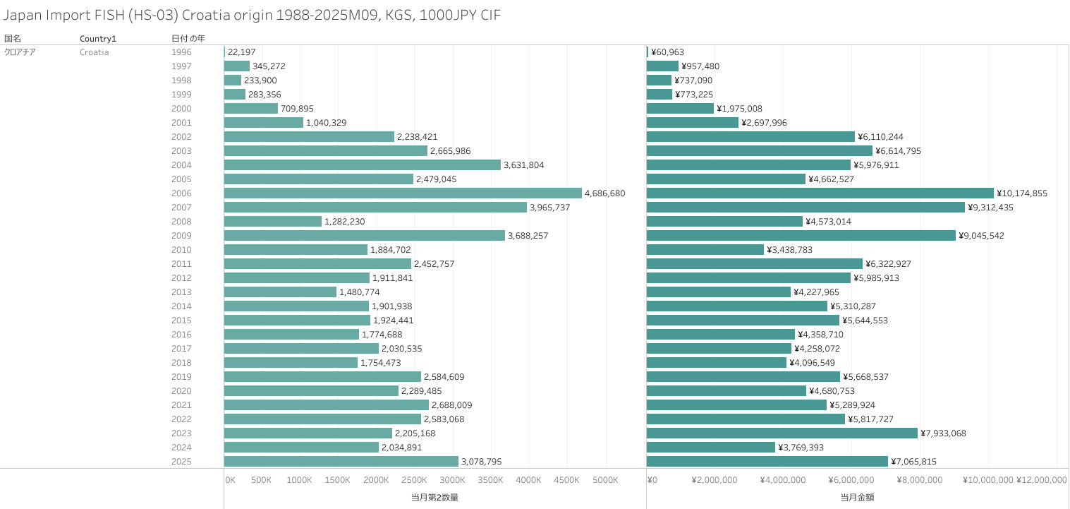 Japan Import FISH (HS-03) Croatia origin 2025M09