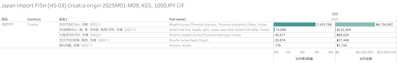 Japan Import FISH (HS-03) Croatia origin 2025M09