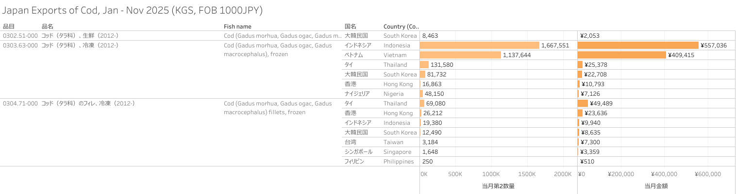 日本 コッド(HS-03)輸出統計 2025年01月-11月