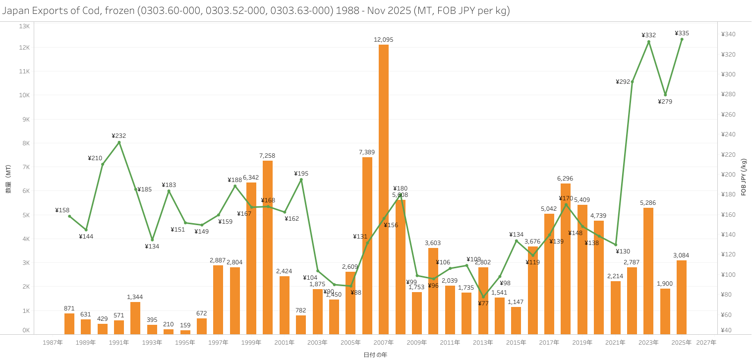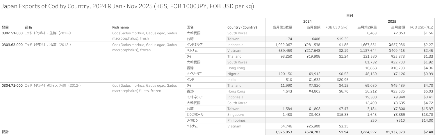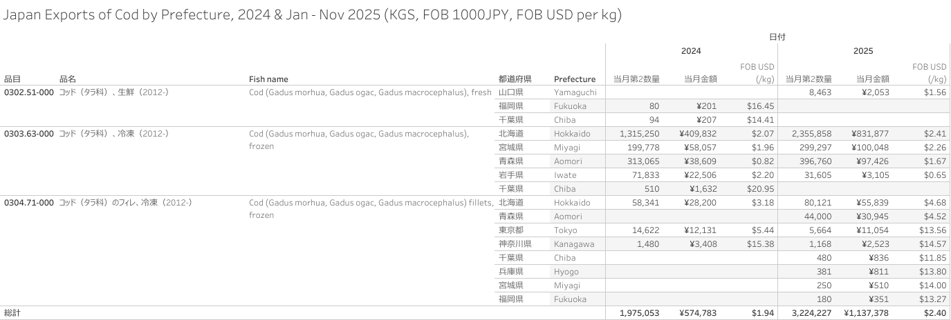 Japan Exports of Cod (HS-03) Jan - Nov 2025